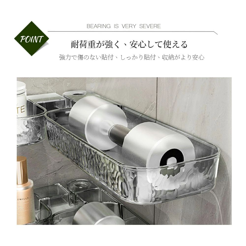 【粘着固定】付着力が強くて、設置しやすい:ナノ材料を採用し、付着力が強いです。穴をあける必要はなく、壁面も壊しません。粘着テープを表面で貼るだけ、その後、浴室収納ラックをテープの上に設置すれば丈夫になります。もし収納ラックを移動したければ、新しい粘着テープを使用してください。【 適用範囲】お風呂場はもちろん、洗面所、キッチンの調味料台としても良いです。洗濯機、乾燥機にも最適です。 シャワージェル、入浴剤、ティーバッグ、スナック、洗濯用品、なども収納できます。シャンプーやコンディショナー、ボディソープ、カミソリなどの整頓に便利です。湿気の多いお風呂場でお風呂グッズを収納し、あるいは油煙の多いキッチンで調味料や調理器具などを片付け、いつでもキレイな状態を保つことができます。【 取り付け簡単】強い付着力の粘着テープはナノ材料を採用し、釘のようにしっかりと壁にくっついて落ちにくい、取り外す後、剥がし跡が残らず壁にも傷つけません。繰り返し使えることもできます。タイル、ガラス、大理石などの滑らかな壁面に設置できます。ご注意ください:パウダー壁、壁紙、不均一な面、塗装壁には適しません。【多用途使用、収納力抜群】2段式でたっぷり収納、多機能ラックです。間隔は自由に調整して、収納スペースを有効活用して節約できます。この収納ラックは浴室だけではなく、洗面所、キッチン、バルコニー、リビングルームでもご利用いただけます。様々な場所で便利に使用できます!ボディソープ、シャンプー、洗顔料、歯磨きコップや石鹸などのお風呂グッズ、調味料や化粧品などをスッキリ収納できます。