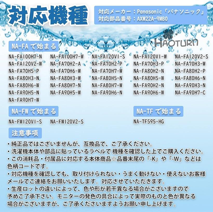 「お手入れラク」 使い捨てゴミ取りフィルター を洗濯機の糸くずフィルターにセットするだけで髪の毛や細かなゴミをキャッチ、汚れたら触らずにポイ捨てできる手軽さで、ベトベト汚れとの接触や歯ブラシ掃除から解放され、洗濯機を常に清潔に保つ便利アイテム。専用モデル パナソニック AXW22A-9MB0 糸くずフィルター に最適なサイズでカット不要、洗濯機を常に清潔に保つストレスフリー設計。「対応機種1」 NA-F10AH7J 、 NA-F50B10 、 NA-F50B10C 、 NA-F50B11 、 NA-F50B11C 、 NA-F50B12 、 NA-F50B12J 、 NA-F50B13 、 NA-F50B13J 、 NA-F50B9 、 NA-F50B9C 、 NA-F50BE5 、 NA-F50BE6 、 NA-F50BE7 、 NA-F50ME3 、 NA-F50ME4 、 NA-F60B10 、 NA-F60B11 、 NA-F60B12 、 NA-F60B13 、 NA-F60B9 、 NA-F60PB10 、 NA-F60PB11 、 NA-F60PB12 、 NA-F60PB13 、 NA-F60PB9 、 NA-F70BE5 、 NA-F70BE6 、 NA-F70PB10 、 NA-F70PB11「対応機種2」 NA-F70PB12 、 NA-F70PB13 、 NA-F70PB9 、 NA-F7AE3 、 NA-F7AE4 、 NA-F7AE5 、 NA-F7AE6 、 NA-F8AE3 、 NA-F8AE4 、 NA-F8AE5 、 NA-F8AE6 、 NA-F8AE7 、 NA-F9AE3 、 NA-F9AE4 、 NA-F9AE5 、 NA-F9AE6 、 NA-F9AE7 、 NA-FA100H7 、 NA-FA120V1 、 NA-FA120V2 、 NA-FA70H2 、 NA-FA70H3 、 NA-FA70H5 、 NA-FA70H6 、 NA-FA70H7 、 NA-FA80H2 、 NA-FA80H3 、 NA-FA80H5 、 NA-FA80H6 、 NA-FA80H7 、 NA-FA90H2 、 NA-FA90H3 、 NA-FA90H5 、 NA-FA90H6 、 NA-FA90H7 、 NA-FW120V1 、 NA-FW120V2 、 NA-TF595「対応品番」 パナソニック AXW22A-9MB0 糸くずフィルター 、 使い捨てゴミ取りフィルター 。「パッケージ内容」AXW22A-9MB0 2個 & 使い捨て ゴミ取りフィルター 4枚 。「強化メッシュで耐久性UP&しっかりキャッチ」高品質ナイロンメッシュが破れにくく長寿命でコストパフォーマンス向上に加え、微細な糸くずや髪の毛をしっかりキャッチ。排水効率を保ち詰まりを防ぐことで、洗濯機トラブルを軽減します。「Panasonic 糸くずフィルターの交換について」糸くずフィルターが目詰まりしていると水が通過しにくくなる。目詰まりが取れにくい場合は水につけてお手入れをしてください。特に、衣類に糊付けをされている方は目詰まりを起こしやすくなる。また、糸くずフィルターは定期的に交換するのがおすすめ。洗っても取れない汚れやネットのほつれが気になったら、新しいものに交換しましょう。※ 他ネットショップでも併売しているため、ご注文後に在庫切れとなる場合があります。予めご了承ください。※ 品薄または希少等の理由により、参考価格よりも高い価格で販売されている場合があります。ご注文の際には必ず販売価格をご確認ください。※ 沖縄県、離島または一部地域の場合、別途送料の負担をお願いする場合があります。予めご了承ください。※ お使いのモニタにより写真の色が実際の商品の色と異なる場合や、イメージに差異が生じることがあります。予めご了承ください。※ 商品の詳細(カラー・数量・サイズ 等)については、ページ内の商品説明をご確認のうえ、ご注文ください。※ モバイル版・スマホ版ページでは、お使いの端末によっては一部の情報が表示されないことがあります。すべての記載情報をご確認するには、PC版ページをご覧ください。