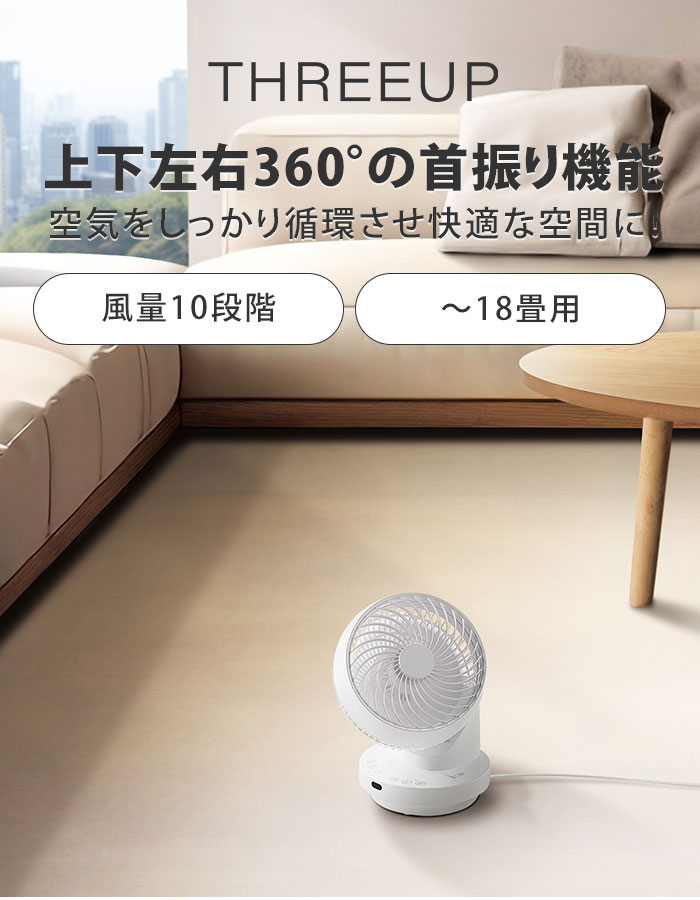 【ポイント13倍】多機能3Dスイング DCターボサーキュレーター360 CF-T2493 THREEUP 18畳用 360度首振り リモコン付 洗える コンパクト ターボ 風量10段階 衣類乾燥 スリーアップ CFT2493