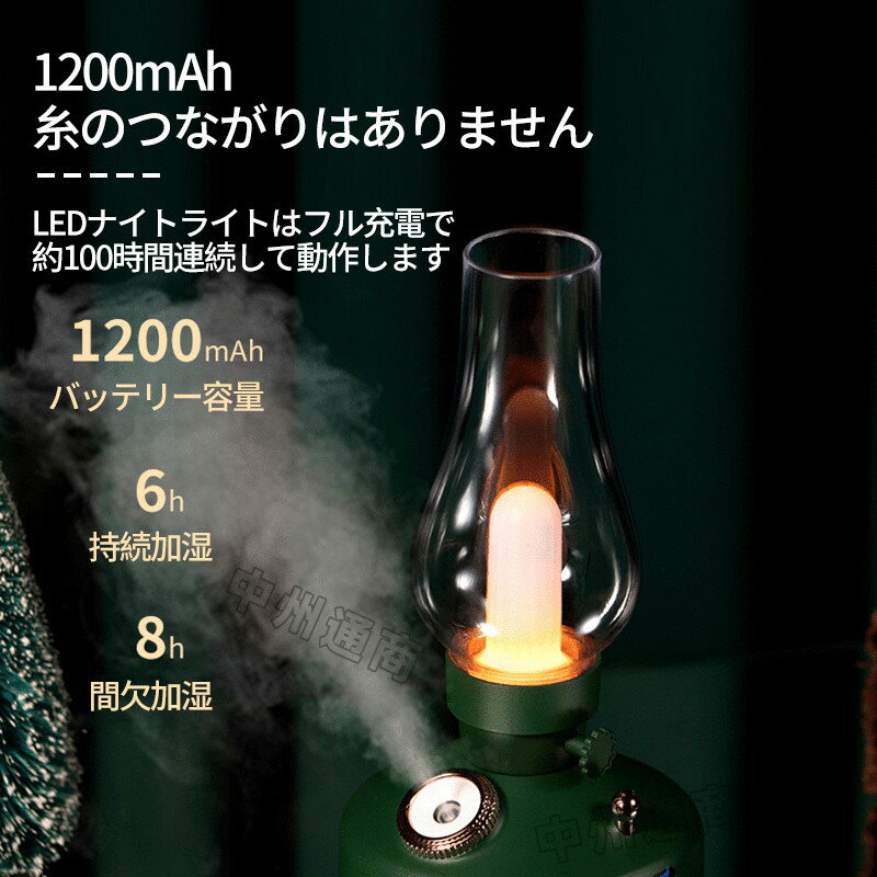 ●加湿器使用時に給水タンク底部がライトアップされます。 自動で切り替わりますので、赤、青、緑、淡色など7色のイルミネーションが色変わりします。 ●超音波式の加湿器になりますので、本体が熱くならず室温に影響を与えません。 ●消費電力1.5Wになりますので、1kWh24円で換算した場合、1時間あたりの電気代は0.04円ほどです。 ●加湿は連続で噴射する連続加湿と、断続で噴射する断続加湿の2モードを搭載しております。 連続加湿はおおよそ6時間ほど。断続加湿はおおよそ8時間ほどで自動停止する安全機能も付いております。 ●タンクは密閉の為倒しても水がこぼれることはございません。 ●充電式の為、場所を選ばず長時間使用可能です。 ●加湿器を使用しなくても、寝室や玄関などのちょっとしたナイトライトにも役立ちます。 ●充電時間:約2時間~3時間 ●本体サイズ:直径:9.5cm 高さ:22.5cm ●加湿方式:超音波 ●タンク容量:280ml ●加湿量:25-40mL/h ●電源:USB充電式 ●USB:タイプC ~ショップスタッフからの感想~ ・加湿器だけではなく、玄関のオブジェとしてもつかってます。 ・ライトのカバーがプラスチックなので、子供部屋でも安全に使用できます。 ・稼働時間が意外に長いので、旅先にも持っていけるのがいいですね。 ・デザインもかわいいので、ちょっとしたギフトにも重宝しております。