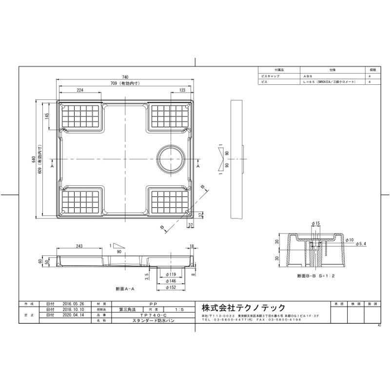 ● ここがポイント ● 〇洗濯機から床への漏水を防ぎ、住まいを守ります。〇四隅のビス止めで、振動にもしっかり対応します。 型番 防水パン/TP740-CW3縦トラップ/SDT-SW-W2・横トラップ/SNT-SW-W2 カラー ニューホワイト 商品サイズ 防水パン/外寸(約)幅740×奥行640×高さ60mm 有効内寸 防水パン/幅709×奥行609mm 材質 防水パン/PP 防水パン耐荷重 (約)200kg 排水口位置 中央 付属品 トラップ、ビス(5.2×65)×4本、ビスキャップ×4個、施工仕様書 ※ 注意事項 ※ ※北海道、沖縄、及び離島への配送は追加送料がかかりますので、ご注文前にお問合せ下さい。 ※当商品は日曜日・祝日の配達ができかねます。 ※商品は玄関先までの配送となります。お部屋の中への搬入、及び設置等は致しかねますのでご了承下さい。 ※商品が到着致しましたら、商品状態、及び同梱部品の確認を行なった上で、取付作業を開始するようお願いします。お客様による取付後の商品の不具合については、保証しかねますので、ご了承下さい。 ※商品の仕様につきましては、予告なしに変更する場合がありますのでご了承下さい。