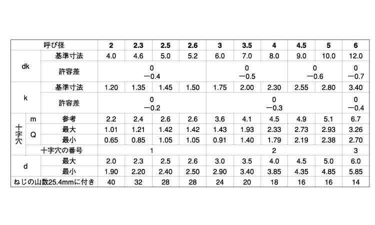 注意事項★ ネジの実写画像についての注意事項 ・ ねじの形状は同等ですが、サイズ、ピッチ、ねじ部の長さは異なります。 ・ 刻印はサイズによって異なり、予告なく変更される場合があります。 ・ ディスプレイの違いにより、実際の色合いと異なる場合があります。関連商品 ★ バラ売り (10本) ここをクリック!★ お得セット (50本) ここをクリック!その他のサイズ 当商品のサイズ違いは、下の「サイズ表」より参照してください。 ★ サイズ表 ここをクリック!同一サイズの 材質/表面処理違い 当商品と同じサイズで、他の材質/表面処理には以下があります。 ・ ステンレス/SSブラック ・ ステンレス/茶ブロンズ (GB6号)この商品は、宅配便でのお届けとなります。ご注文時ネコポスを選択された場合、宅配便に変更させていただきます。配送についてはコチラをご覧ください。ステンレス/生地 (+) サラタッピング [2種B0形]M4×50 【 小箱 : 1箱/200本入り 】注)写真はイメージです! 刻印、ねじ部の長さ、ピッチなどは、サイズによって異なります。刻印はメーカーによって予告なく変更される場合があります。 頭部形状 サラ (+)十字穴付きの、皿(さら)頭 です。皿頭は、上面が平らになっており、円錐形をひっくり返したような形状です。主に頭部を出っ張らせたくない時に使用します。 材 質 ステンレス最も代表的なステンレス鋼(SUS304相当)です。強度は「鉄」とほぼ同等程度です。耐食性に優れていて、機械的性質も良好です。通常磁性はないが、冷間加工によって硬化し、磁性が発生することもあります。 表面処理 (メッキ) 生地 表面処理/メッキは、何も施していない状態です。そのため、耐食性や見た目は、材質そのものの特性および色合いとなります。注)上記「材質」、「表面処理」画像は、厳密な色合いが表現できません。イメージ程度でご覧ください。 ねじ部形状 2種B0形ねじ部先端の2〜2.5山分がテーパーになっており、少しだけ絞ってあります。ピッチはタッピングの中では2番目に粗くなっています。主に薄鋼板及び厚板(5mm以下)、非金属、樹脂、硬質ゴムに適していると言われています。 サイズ M4 × 50[太さ] × [長さ]「太さ」、「長さ」共に ミリメートル(mm)単位で表します。 「太さ」の先頭に "M" が付きます。 50 mm#24 mm( M4 )工具はこちらから選択 ⇒