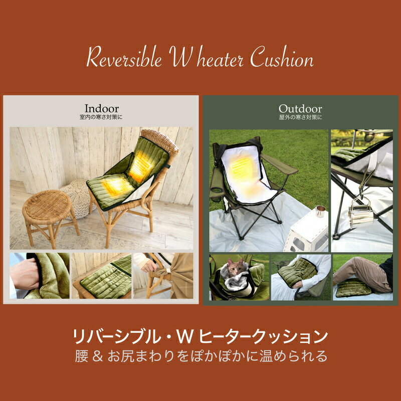 ダブル温熱 椅子ヒーター リバーシブル・Wヒータークッション PA-005 持ち運び可能 イス シートヒーター イスヒーター ホット椅子 洗濯可能 ホットクッション ホット座椅子 電気座椅子 電気ブランケット ホットマット シートヒーター ヒータークッション