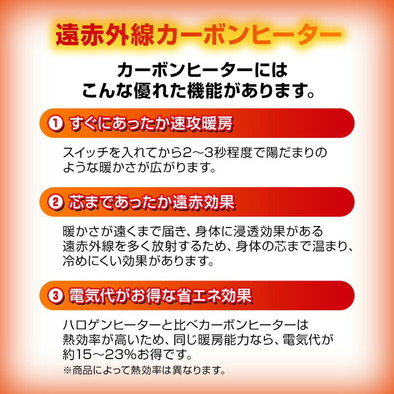 TEKNOS 足温器 ヒーター 暖房 ほかにも取り扱いございます。セラミックファンヒーター 700W TST-708 TST-709テクノイオン・人感センサー付 TSI-M2202 TSI-M2201K速暖 直管型ハロゲンヒーター 1200W PH-1212(W)遠赤外線 カーボンヒーター CHM-4531(W) CHM-4532(K)セラミックファンヒーター 1200W TS-125(W) TS-127(DB) TS-1290(K)こたつ用取替え ヒーターユニット 600W TMS-601Fこたつ用 取替えヒーターユニット510W TMS-501Fミニファンヒーター TS-615 足元暖房機 コンパクト温度調節付き ミニファンヒーター 600W TSO-604足元に近づけて使えるモバイルヒーター TS-320 TS-310 TS-301 人感センサー付き消臭ファンヒーター TS-P1220W TS-P1221NV木目調ホットカーペット 2畳 撥水加工 TWM-2000M木目調ホットカーペット 1.5畳 撥水加工 TWM-1500Mデスク下に取り付けてこたつに、脚付きでパネルヒーターにも毛布、布団を掛けるだけでひとりコタツ 天板付きホットクッション+足温器の1台2役のマルチクッション折り曲げ可能 ホットマットマイヤー 45×90cm EC-K4593RHミニマットマイヤー EC-K411H EC-K491H 45×45cmパワーモニター付き 遠赤外線シーズヒーター TSH-9201木目調スリムカーボンヒーター CH-313M(DB)母の日 ギフト 父の日 ギフト 敬老の日 ギフト クリスマス ギフト お正月 子供の日 ギフト バレンタインデー ギフト ホワイトデー ギフト 可愛い おしゃれ オシャレ パーティー 入学祝い ギフト 卒業祝い ギフト 結婚記念日 ギフト お歳暮 ギフト お中元 旧正月 春節 お誕生日 などのプレゼントに ひまつぶし大変申し訳ございませんが のし 包装は対応いたしておりません。TEKNOS テクノイオン搭載 スリムカーボンヒーター CHI-310 テクノス スリムで場所をとらない どこにでも置きやすい すぐあったか 速暖 遠赤外線 ぽかぽか 省エネ カーボンヒーター■商品詳細テクノイオン搭載スリムカーボンヒーターコードフック付 300W 1灯●テクノイオン搭載で消臭除菌効果●スリムで、どこにでも置きやすい(1灯300W)●すぐにあったか瞬間暖房●芯まであったか遠赤効果●省エネで電気代がお得型番:CHI-310消費電力:300W電気代:約8.1円/時サイズ:幅19.0×奥行き19.0×高さ48.5cm本体質量:0.74kg色:ホワイトJAN:4955014043382■広告文責株式会社マツムラカメラ 076-242-1122区分:家電 暖房器具発売元:株式会社千住※使用感には個人差がございます。暖房 ヒーター ほかにも取り扱いございます。スリムカーボンヒーター 使い方 カーボンヒーター おすすめ ヒーター 人気 暖房 効果 ストーブ 比較 冬物家電 ランキング 冬 家電 あったか 暖房器具 ぽかぽか あったかグッズ 女性 男性 スリム 薄型 コンパクト 小型 電気ストーブ 誕生日 スリムヒーター 母の日 父の日 敬老の日 遠赤外線カーボンヒーター 足元 足もと 足下 冷え 対策 オフィス 会社 デスクワーク ひとり暮らし 一人暮らし 1人暮らし 遠赤外線 クリスマス ギフト プレゼント 贈り物 省エネ 電気代節約 節電 CHI-310 口コミ クチコミ CHI310 レビュー 白 ホワイト 評判 CHI-309 新型 CHI309 後継 テクノス teknos 通販 google グーグル yahoo ヤフー LINEショッピング 楽天市場 ※当社は沖縄・離島・中継地域は配送できません。沖縄・離島・その他一部地域は9,800円以上のご注文または「送料無料」商品は、楽天市場のシステム上お客様へ送料の追加請求ができないため、誠に勝手ながらご注文をキャンセルとさせていただきます。大変申し訳ございませんが、何卒ご理解の程よろしくお願いいたします。