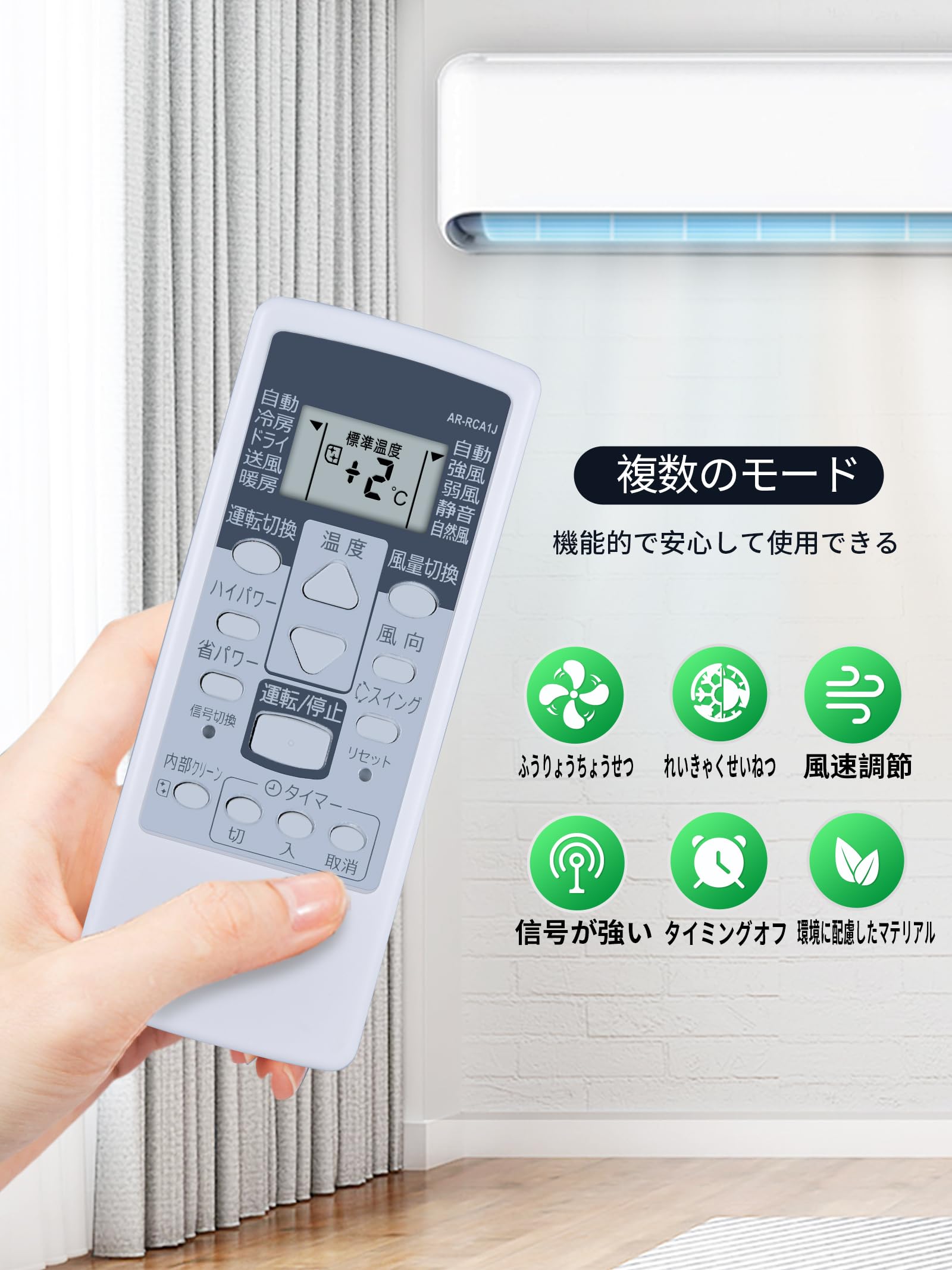 ・ ARRCA1 ARRCA1・・Size:ARRCA1・?対応機種ARRCA1はFujitsu富士通エアコンの代替品で、以下の富士通エアコンに適しています:ASAW ASA5W ASA8W ASA40W ASE ASE5 ASE8 ASEV AS8V AS40V。・?設定不要複雑な信号設定が不要で、単4電池本を入れるだけですぐに使用できます。 エアコンの電源/、音量調整、入力切替、チャンネル変更など、お子様からお年寄りまで全ての操作が簡単に行えます。 ※電池は付属しておりません。・?操作簡単よく使エアコンの基本機能を備え、操作しやすい大きめボタンを使用し、しかもボタンの上には分かりやすく文字を配布するため、目への負担を軽減し快適な操作を実現します。置いたままでも押しやすい安定感があり、つまんで操作、握って操作、置いたまま操作が出来ます。※機種によっては一部の機能が操作できない場合があります。・?長距離・広範囲でも使える強力な広角赤外線発光ライトを搭載し、動作距離説明 対応Fujitsu富士通のエアコン型番: ASAW ASA5W ASA8W ASA40W ASE ASE5 ASE8 ASEV AS8V AS40Vご購入の際、お使いのエアコンのモデルが互換性リストに記載されていることをご確認ください