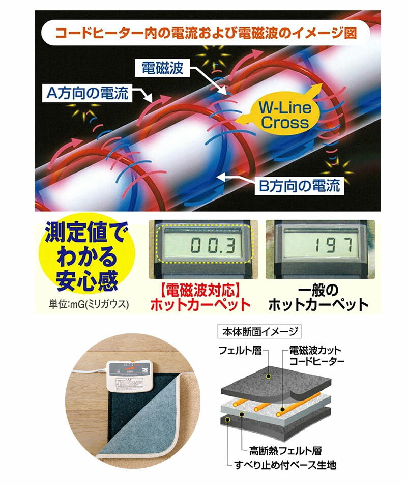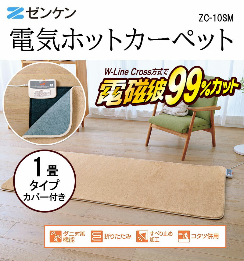 ゼンケン ホットカーペット カバー 1畳 電気カーペット ホットカーペット 1畳 本体 電磁波99%カット ZC-10SM