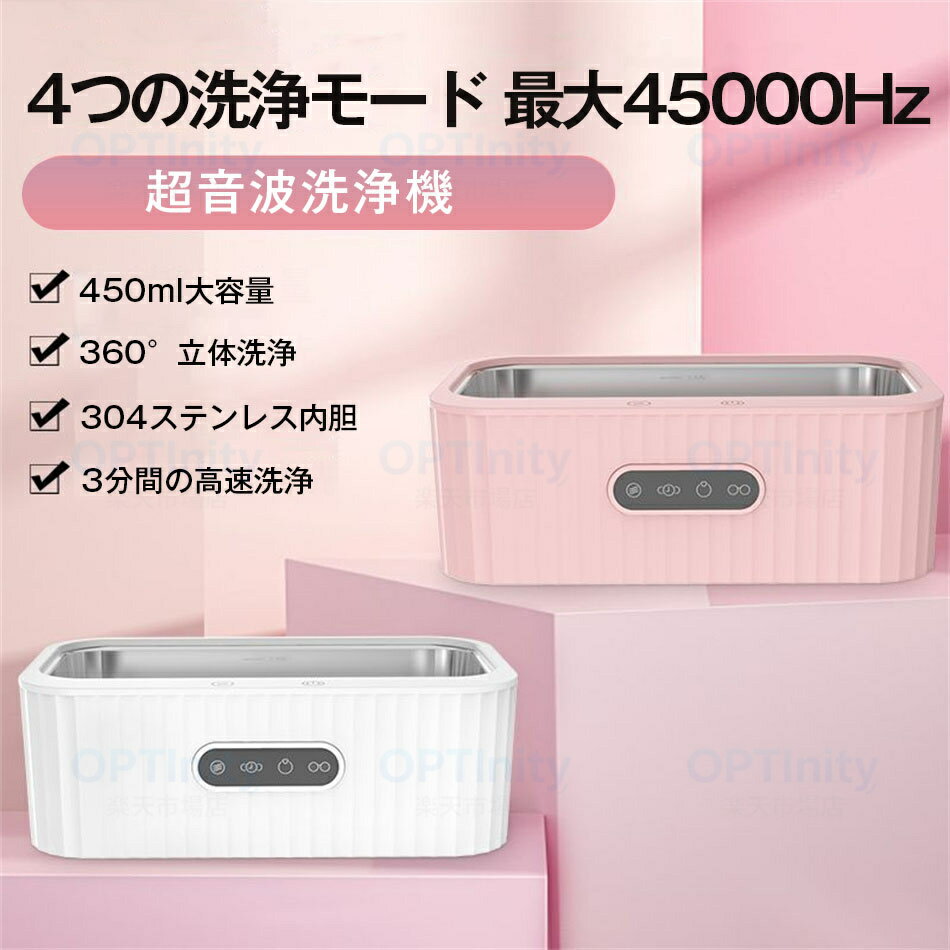 超音波洗浄機 メガネ洗浄器 超音波洗浄器 最大45000Hz 450ml大容量 超音波洗浄器 4つの洗浄モード 超音波クリーナー 洗浄カゴ メガネ アクセサリー ジュエリー 腕時計 眼鏡 入れ歯 指輪 印鑑 貴金属 304ステンレス内胆 3分間の高速洗浄 コンタクトレンズ洗浄機 コンパクト