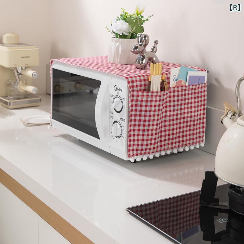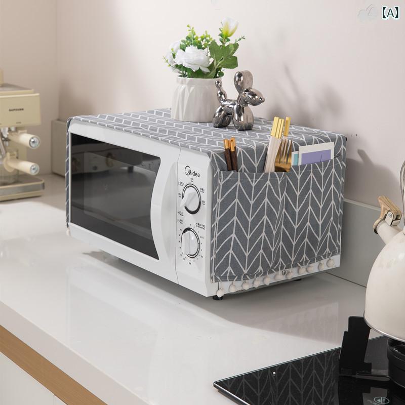 電子レンジ オーブン用 防塵カバー ポリエステル 綿 混紡 布製 トップカバー プリント柄 幾何学柄 格子柄 おしゃれ モダン シンプル 家庭用 キッチン雑貨 汚れ防止 埃除け 多色展開