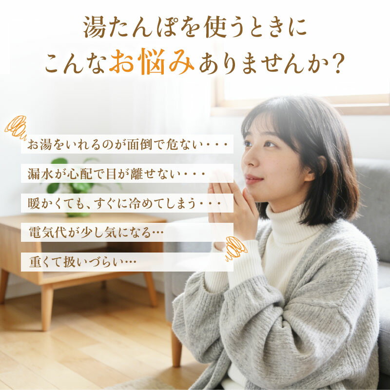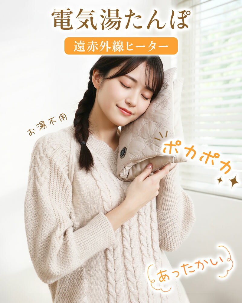 お湯不要の新設計。遠赤外線で「じんわり」続く電気湯たんぽ 「お湯を入れるのが面倒」「漏れが心配」「すぐ冷める」「重くて扱いづらい」…そんな湯たんぽのお悩みに。 本品はUSB給電式で、コンセントに縛られず、どこでも手軽に“ぽかぽか”を叶えます。 ■ 選ばれるポイント ・遠赤外線発熱:芯からじんわり、やさしい温もり ・スイッチONで即温:寒さを感じた瞬間からすぐ対応 ・両面発熱:温もりが広がるダブルの暖かさ ・8層の保温構造:暖かさを長時間キープ ・3段階温度調節:45℃/55℃/65℃(目安) ・過熱保護:安心設計 ・丸洗いOK:汚れたら水洗いで清潔に(※端子部は濡らさないでください) ・モバイルバッテリー用ポケット:容量に応じて持続時間が変わります ■ 使い方いろいろ:手のひら~お腹・足元まで ひざ上・腰回り・足元・手先など、冷えが気になる場所にフィット。 自宅のくつろぎ時間、デスクワーク、移動中、就寝前のリラックスタイムにもおすすめです。 ■ カラー ベージュ / グリーン ■ 商品仕様 商品名 電気湯たんぽ(USB給電式) 本体サイズ 約430×320mm 本体重量 約138g 発熱電力 9W(MAX) 発熱方式 遠赤外線発熱 温度調節 3段階(約45℃/55℃/65℃) ■ ご注意 ・USB給電式です。モバイルバッテリーは付属しません(商品ページ表記に従ってください)。 ・水洗いの際は端子部を濡らさないようご注意ください。 ・低温やけど防止のため、同一箇所の長時間使用はお控えください。 ・小さなお子様のみでのご使用はお控えください。就寝中の使用は体調に合わせてご判断ください。