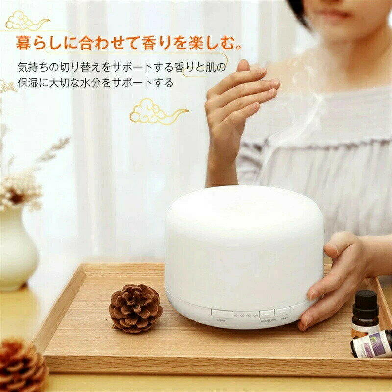 "商品詳細超音波加湿器*1計量カップ*1取扱説明書*1電源コード*1【一台多役?超音波加湿器】加湿器?アロマディフューザー?LED照明ライトとして1台で3役をこなす卓上加湿器です。超音波振動により水を細かなミストにして吹き出し、水蒸気が空気中に均一に広がり、乾燥した空間を優しく潤してくれます。潤いとともに空気湿度を心地の良いレベルに調節してくれます。リラックス効果を持ちながら、風邪やインフルエンザ、花粉症の予防に役立ち、健康な暮らしにも繋がりますので、秋から春にかけての乾燥するシーズンに大活躍です。【アロマ対応?静音設計】エッセンシャルオイルを入れて、清潔で爽やかな香りをお楽しみいただけます。また、ジャスミン茶やレモンなどの植物や果実を水タンクに入れて、自然な香りも楽しめます。ヨガ、ジム、リビング、ベッドサイド、子供の部屋に最適な加湿器です。高品質の静音仕様超音波クールスチーム技術により、動作音36dbより小さく抑えられています。睡眠、生活や仕事に妨げることがありません。【七色LEDライト】カラフルなLEDライト搭載、照明だけでも使用できるおしゃれな加湿器です。7色に変化するイルミネーションモードと好きな色を固定して光らせる単色モードから気分によって楽しむことが可能、ライト輝度は2パターンあり、やわらかい光を見るだけで疲れもストレスもふっ飛ばしていきます。【噴霧量調節?超静音デザイン】500ml大容量加湿器、弱運転(16H)と強運転(10H)の2モード調湿でき、最大約10時間連続働かせるので水を頻繁に継ぎ足すことはありません。動作音35dB以下の超静音加湿器、睡眠はもちろん作業への集中も妨げず、スヤスヤ眠る赤ちゃんがいる部屋に全体加湿から、集中力が必要なオフィスで自分専用まで手軽に使えます。快適な湿度を保つことで、秋冬による肌荒れ、喉のトラブル、長時間のパソコン仕事によるドライアイを防ぐことができます。【安心な自動停止機能&嬉しい省エネ】3つのタイムモードが搭載され、運転時間は60分、120分、180分から連続モードに設定できる加湿器です。部屋の湿度や気候に合わせて止めたい時間を設定すれば、消し忘れ防止ができて、過加湿にならず快適な湿度をキープ。また、万が一を防いで、10時間連続運転している場合、タンク内に水切れの場合、本体がうっかり倒した場合は、自動的に運転を停止する空焚き防止機能も付いており、加湿したまま外出したり、寝ていたりする時も心配はありません。消費電力わずか13Wの省エネ加湿器、より電気代を節約できて経済的です。【おしゃれな加湿器?プレゼントに最適】かわいらしいフォルムがインテリアとして映えるので家中のあらゆる場所にマッチします。プレゼントとして贈るにもぴったりです。【長期安心保証】当店からご購入場合、12ヶ月間日本国内安心保証が付き、品質向上と不良率を低下させるには常に努めておりますが、商品不良率をゼロにすることができかねます。万が一商品不具合のようでしたら、販売店にメールにてお気軽にご連絡ください。必ず最善を尽くし、保証サービスをご対応いたします。お客様にご満足頂けるよう精一杯努力いたします!キーワード:加湿器 卓上 超音波加湿器 500ml大容量 アロマディフューザー 空気清浄機 おしれ 加湿器卓上 LEDライト7色 アロマ タイマー機能 超静音 省エネ 保湿 美容効果 肌の乾燥対策 プレゼント【オフィス&会社&家庭用】【送料無料】""商品詳細超音波加湿器*1計量カップ*1取扱説明書*1電源コード*1【一台多役?超音波加湿器】加湿器?アロマディフューザー?LED照明ライトとして1台で3役をこなす卓上加湿器です。超音波振動により水を細かなミストにして吹き出し、水蒸気が空気中に均一に広がり、乾燥した空間を優しく潤してくれます。潤いとともに空気湿度を心地の良いレベルに調節してくれます。リラックス効果を持ちながら、風邪やインフルエンザ、花粉症の予防に役立ち、健康な暮らしにも繋がりますので、秋から春にかけての乾燥するシーズンに大活躍です。【アロマ対応?静音設計】エッセンシャルオイルを入れて、清潔で爽やかな香りをお楽しみいただけます。また、ジャスミン茶やレモンなどの植物や果実を水タンクに入れて、自然な香りも楽しめます。ヨガ、ジム、リビング、ベッドサイド、子供の部屋に最適な加湿器です。高品質の静音仕様超音波クールスチーム技術により、動作音36dbより小さく抑えられています。睡眠、生活や仕事に妨げることがありません。【七色LEDライト】カラフルなLEDライト搭載、照明だけでも使用できるおしゃれな加湿器です。7色に変化するイルミネーションモードと好きな色を固定して光らせる単色モードから気分によって楽しむことが可能、ライト輝度は2パターンあり、やわらかい光を見るだけで疲れもストレスもふっ飛ばしていきます。【噴霧量調節?超静音デザイン】500ml大容量加湿器、弱運転(16H)と強運転(10H)の2モード調湿でき、最大約10時間