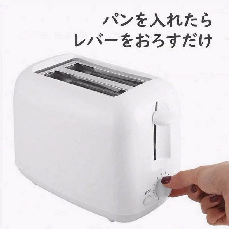 商品説明 【商品仕様】 サイズ:幅13×奥行22×高さ15cm 重量:05kg 電源:AC100V(50/60Hz) 消費電力:750W 特徴 ●トーストは1度に2枚まで焼けます ●焼き色調整つまみで食パンの焼き色を6段階調整可能 ●パンは6枚切り、8枚切り対応 ●レバーを下げるだけの簡単操作 【ご注意ください】 ※実際の色味と写真の色味は光の当たり方やディスプレイの環境によって、多少異なる場合がございますのでご了承くださいませ。 ※製品品質向上、または製造時期により、予告なくデザイン及び仕様を変更する場合がございます。 ※生産過程におきまして、若干のサイズ誤差、個体差が生じる場合がございます。 ※サイトに掲載されている商品は、撮影の照明、またパソコンなどの環境により、画像と実際の商品の色味が多少異なる場合がございます。商品説明 【商品仕様】 サイズ:幅13×奥行22×高さ15cm 重量:05kg 電源:AC100V(50/60Hz) 消費電力:750W 特徴 ●トーストは1度に2枚まで焼けます ●焼き色調整つまみで食パンの焼き色を6段階調整可能 ●パンは6枚切り、8枚切り対応 ●レバーを下げるだけの簡単操作 【ご注意ください】 ※実際の色味と写真の色味は光の当たり方やディスプレイの環境によって、多少異なる場合がございますのでご了承くださいませ。 ※製品品質向上、または製造時期により、予告なくデザイン及び仕様を変更する場合がございます。 ※生産過程におきまして、若干のサイズ誤差、個体差が生じる場合がございます。 ※サイトに掲載されている商品は、撮影の照明、またパソコンなどの環境により、画像と実際の商品の色味が多少異なる場合がございます。