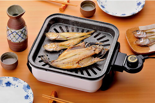 小型ホットプレートでちょこちょこ焼ける! 卓上でちょこちょこっと焼ける! 『コンパクトグリル ちょこちょこ焼き』 少人数用に最適サイズの卓上グリルで、 テーブルを広々使えるコンパクト設計の消煙グリルです。 小型ホットプレートの特徴 コンパクトホットプレート『ちょこちょこ焼き』は、少人数用に最適なサイズの小型電気グリルなので、大きなサイズを使っていたときに占拠していたスペースも余裕に! テーブルを広々使えるコンパクト設計です。 小さいのにハイパワー1200W!ハイスピード2分で焼き頃加減になります! <こんな使い方もオススメ> ●卓上グリルは総菜の暖め直しに最適!フライも唐揚げもサクサク カリカリに仕上がります。 ●2人分のお野菜もアルミホイルをかぶせてオーブン調理。焼きなす、干物もふんわり焼き上げるコンパクトホットプレートです。 ●穴あきプレートだから余分な油を落としてヘルシー調理ができる小型電気グリル。干物だって大丈夫です! ●ご家庭でも安心な消煙グリル。本体兼用水受け皿になっているので、煙が出にくく、消煙効果バッチリです! コンパクトホットプレートは焦げ付きにくくこびり付きにくい! プレート表面はマーブルコート仕様なので、焦げ付きにくく、こびり付きにくい仕様です。使い方は多様!小型ホットプレート『コンパクトグリル ちょこちょこ焼き』は少人数用に最適です。 小型ホットプレート 商品詳細 【商品名】 コンパクトグリル ちょこちょこ焼き KS-2847 1810001 【サイズ】 幅360×奥行245×高さ105mm 【重量】 1560g 【材質】 プレート:アルミニウム合金(マーブルコート加工) 本体:スチール(紛体塗装) 脚部:ポリプロピレン樹脂 【区分】 家電 【仕様】 電源・消費電力:AC100V-1200W、温度調節:サーモスタット可変式、コード長:1.4m、プレート:ヒーター一体式 【メーカー】 杉山金属 【製造国】 日本 【保証期間】 1年間 【JAN】 4900896128474 広告文責 (有)アテーネシステム 076-254-0238小型ホットプレート