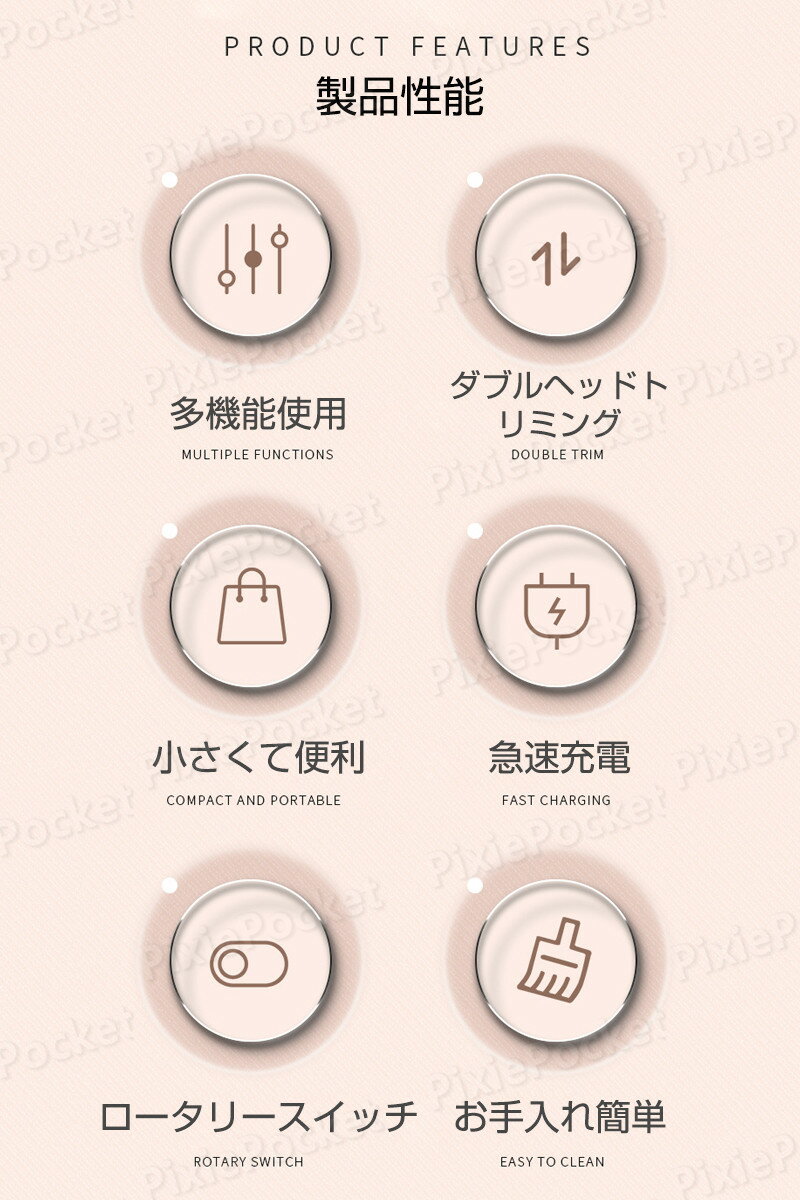 製品パラメータ 製品名:両頭シェーバー 商品サイズ:145mm×25mm×25mm 製品重量:52g 製品の付属品: ホスト x1/取扱説明書 x1 (中国語と英語)/充電ケーブル x1/ブラシ x1