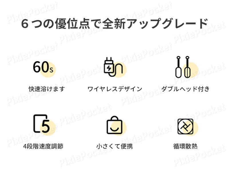 品名:ワイヤレス電動泡立て器 定格功率:20w 段階選択:4段階 電池容量:1500? 充電時間:約3時間 サイズ:160*100*40MM 生産国:中国