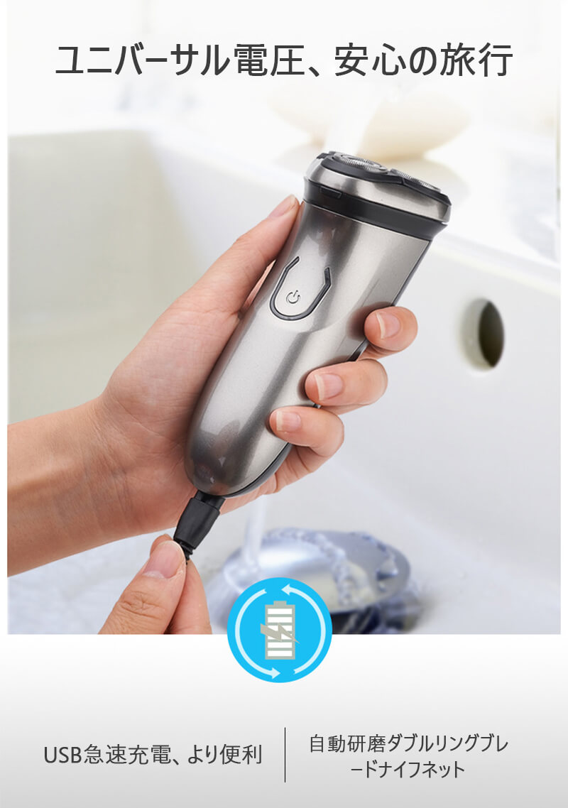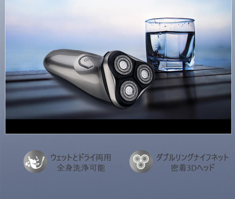 商品情報 色:シルバー カッターヘッド:密着3Dヘッド 洗浄方法:全身洗浄可能 ユニバーサル電圧:ユニバーサルUSBポート 刃:自動研磨ダブルリングブレードナイフネット 充電方法:USB充電 産地:中国