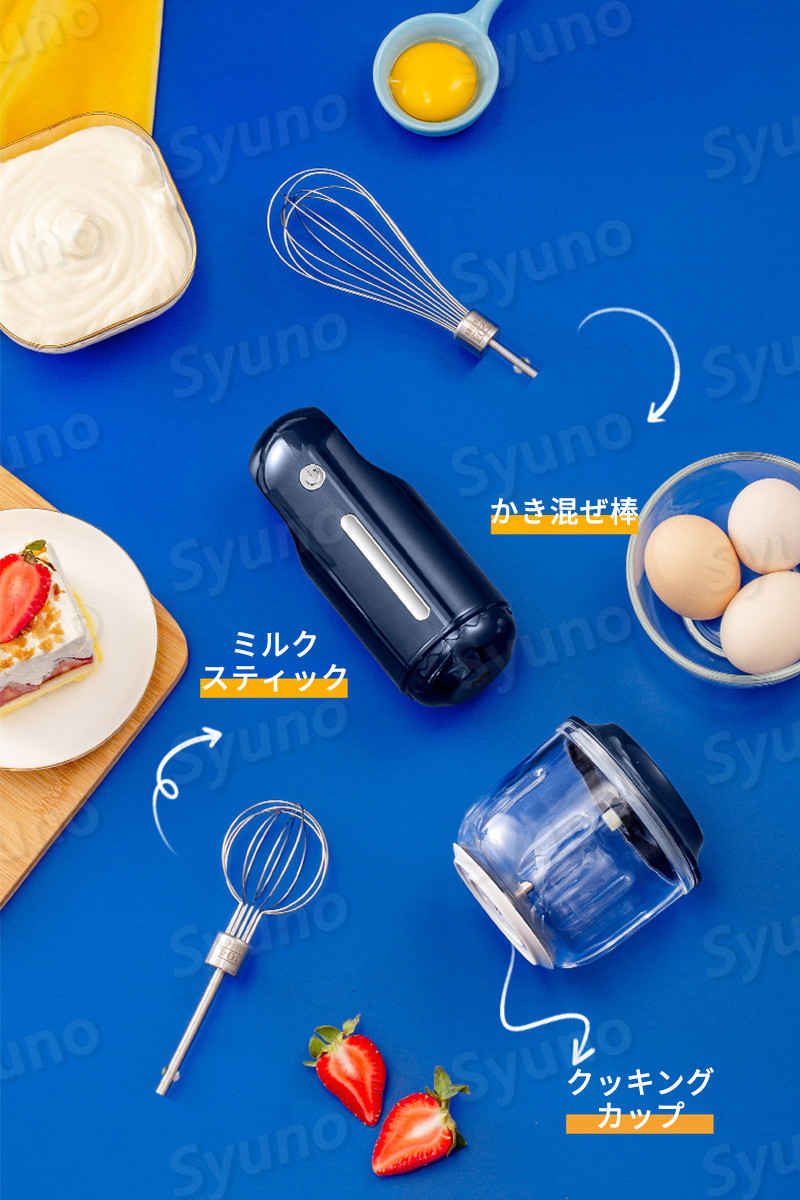 お買い物マラソン【P5倍】泡立て器 電動 電動泡立て器 3段階スピード 手持ち ミキサー 小型 おしゃれ 調理器具 泡立て 消音 静か 泡だて器 簡単 ミルク泡立て器 電動牛乳 泡立て器