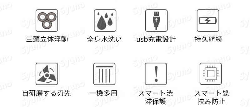 商品情報 商品名称;スマートカミソリ 刀先タイプ;フローティングタイプ 商品の特徴: 素早く充電できる?水洗デザイン? 360°?双?刀網?スマートに髭挟み防止?多目的美容 包装?明:本体?usb充電線 定格?圧:100v-240v 定格電力:3w 産地:中国