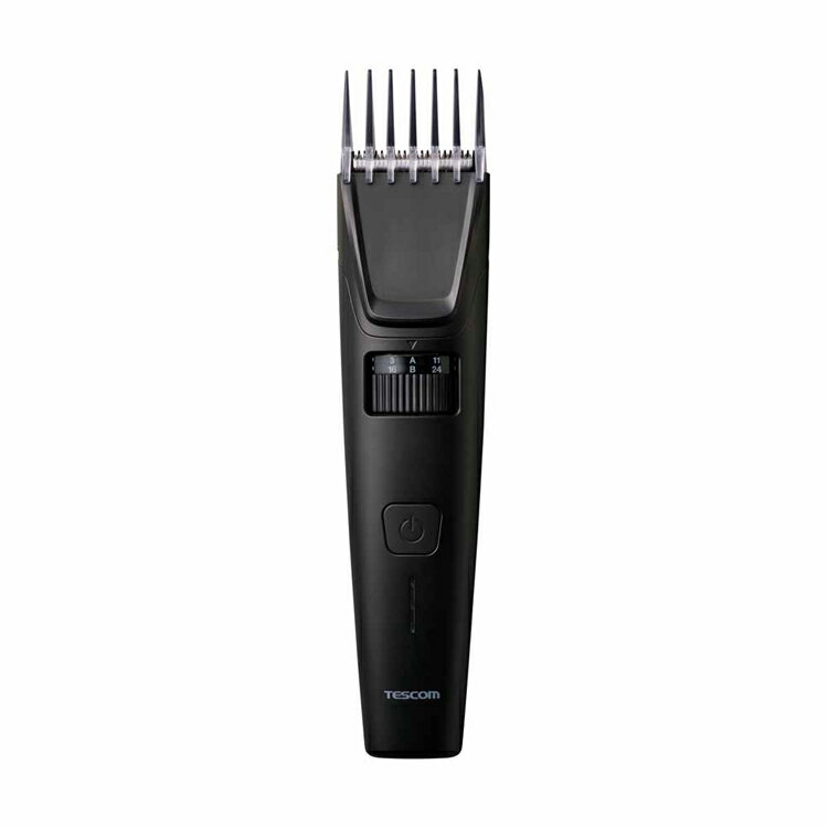 【概要】◇幅広いヘアスタイルに対応。ボウズからショートスタイルまで実現します。◇刈り高さ幅3mm〜11mm、16mm〜24mmの選べるアタッチメントで、長さ調節が簡単に。手元のダイヤルを回して、刈り高さを1mmずつ調節できるから、セルフカット初心者の方でも安心です。◇スキ刈りコームを使えば、耳まわりなどの生え際もスキバサミのような自然な仕上がりに。ボリュームダウンも簡単です。◇切れ味の良い45度の鋭角刃を採用。髪が引っかかりにくく、スムーズな刈り心地ですばやくセルフカットできます。◇握りやすさを考慮したボディ形状と軽量設計で、疲れにくくラクに使えます。◇流水にも強いIPX7の防水設計。濡れた髪のままでも使えるので、入浴のついでにヘアカットを済ませたいときにもぴったりです。※シャンプーの泡を落としてからお使いください。※お風呂場など水気のある場所では、電源アダプターを接続してのご使用はおやめください。(交流時)◇刃先を本体にセットしたまま水洗いでき、本体についた毛クズもきれいに流せます。※故障の原因になりますので、水の中に入れて洗わないでください。◇専用の掃除用ブラシを付属。しっかりカットの後は、刃を外して内側から毛クズを取り除くことができます。◇1回の充電で60分間の連続使用が可能なロングバッテリーモデル。もし途中で充電が切れても、USB Type-C(TM)ケーブルで充電しながら使えます。家族で順番に使う際も安心です。 ※使用時間 最大20分×3回の計60分◇本体への充電時間を50%短縮。急速2時間充電で、切りたいその日にすぐ充電してパパっとカットできます。 ※従来機種TT490Aとの比較※本製品に電源アダプターは付属しておりません。USB Type-Cポート搭載のものを別途ご用意ください。◇充電状況がわかるLEDランプで、電池残量を把握しながら使えます。突然のバッテリー切れの心配がありません。◇AC100-240Vの地域で使用できます。 A2プラグ地域以外でご使用の際は、変換プラグをご用意ください。※リニューアルに伴い、パッケージ・内容等予告なく変更する場合がございます。予めご了承ください。●商品サイズ(cm)幅約4.5×奥行約3.9×高さ約18.4●商品重量約175g●材質主材料:ABS●仕様電源方式:充電・交流式電源:入力 AC100-240V 50/60Hz、出力 DC5.0V 1.0A消費電力:5W以下充電時間:2時間使用時間:60分使用電池:リチウムイオン電池刃幅:40mm刈り高さ:0.8mmスイッチ:ボタン式充電残量表示:LEDランプ3段階コード長:1.8m防水性能:IPX7(本体)水洗い:◯海外使用:◯付属品:コーム2種(刈り高さ3mm-11mm/17mm-25mm)、電源ケーブル(USB Type-C(TM) - USB Type-C)/掃除用ブラシ、TESCOMオイル、収納ポーチパーツ:コームA(TA034328)、コームB(TA034335)、スキ刈コーム(TA034366)電源ケーブル(TA034397)、替え刃(TA034380)、オイル(500150)、掃除ブラシ(501455)保証期間:1年間カラー:ブラック(検索用:Tescom バリカン ヘアカッター 3mm 24mm 水洗い コードレス 充電 交流 海外 インバウンド type-c 4975302549020)最強翌日配送対象商品に関するご案内 最強翌日配送対象商品・対象地域に該当する場合は最強翌日配送マークがご注文カゴ近くに表示されます。 最強翌日配送可能なお支払方法は【クレジットカード、代金引換、全額ポイント支払い】のみとなります。 下記の場合は最強翌日配送対象外となります。 ・15点以上ご購入いただいた場合 ・時間指定がある場合 ・ご注文時備考欄にご記入がある場合 ・決済処理にお時間を頂戴する場合 ・郵便番号や住所に誤りがある場合 ・最強翌日配送対象外の商品とご一緒にご注文いただいた場合 ・お届け先住所文字数が40文字以上の場合【LINE】 友だち追加で★最大1,500円OFFクーポンGET★