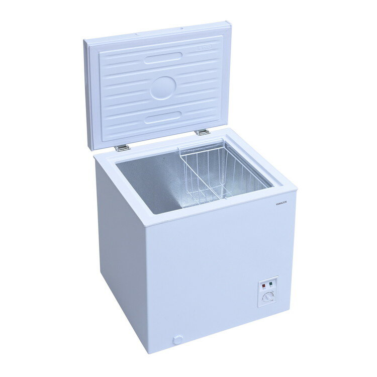 ・冷気が逃げにくくたっぷり収納できる上開き式。・色/ホワイト・食品の鮮度を保ちやすく、大きな食材も入れやすい!大容量の収納力でまとめ買いした冷凍食品の保存に役立ちます。・たっぷり入る容量約66L:買い物カゴ約1.5杯分の冷凍食品をしっかり収納!・しっかり冷やせる上開き式:冷たい空気は下へ移動するので冷気が逃げにくく効率よく冷凍できて省エネに!・7段階の温度調節:冷蔵〜急冷モードまでダイヤルで簡単に調節・小物もスッキリ収納できるバスケット付き・出し入れしやすいロータイプ・静音設計約29dB・霜取り用ヘラ付き■商品サイズ(約)幅54.5×奥行47.6×高さ61.5cm■素材本体:鋼鉄・PU・PS・PP・磁石、扉緩衝材:ゴム■重量約17kg■生産国中国■仕様容量:(約)66L電源:AC100V(50/60Hz)電動機の定格消費電力:55W(50/60Hz)年間消費電力量(JIS C 9801-2015年):153kWh/年(50/60Hz)冷媒:R600a電源コードの長さ:1.8m付属品:小物バスケット、ヘラ、水抜き栓、取扱説明書兼保証書1年間保証書付き【代引きについて】こちらの商品は、代引きでの出荷は受け付けておりません。【送料について】北海道、沖縄、離島は送料を頂きます。