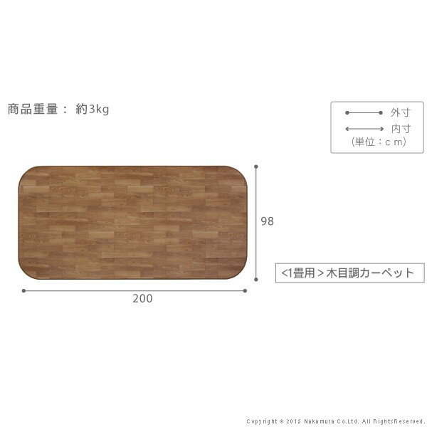 【カラーバリエーション】ブラウン・ナチュラル・ホワイト【仕様】表面:塩化ビニール樹脂中面:塩ビ発泡層裏面:ポリエステル100%(不織布)抗菌・防カビ・防汚【サイズ】幅200x奥行98cm重量:約3kg株式会社ナカムラ(61600001)【代引きについて】こちらの商品は、代引きでの出荷は受け付けておりません。【送料について】沖縄、離島は送料を頂きます。