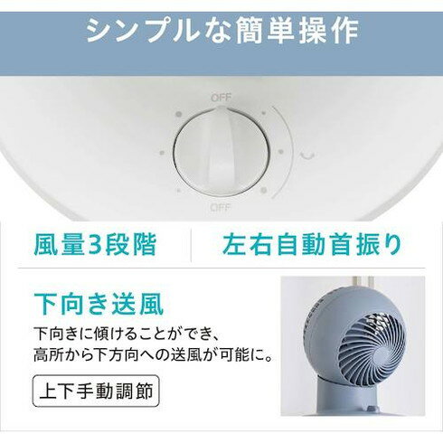 【商品スペック】特長●コンパクトなのに8畳の広さに対応するパワフル送風のサーキュレーターです。●下向きにも送風できるので、高所からの送風も可能です。用途●室内の空気の循環以外に、洗濯物の乾燥、部屋の換気、隣室への空気の送り込みなどに。仕様●電源(V):単相100●消費電力(W)(50/60Hz):22/20●ハネ径(cm):12●色:ピンク●幅(mm):180●奥行(mm):180●高さ(mm):250●電源コード長さ(m):約1.4●首振り:左右自動90°●風量調節:3段階●適合床面積:〜8畳●リモコン有無:無し●タイマー:なし●標準消費電力料金(50Hz):0.6円/h●標準消費電力料金(60Hz):0.54円/h●上下角度調節(手動):115°●最大風量(50/60Hz):5.9[[M3]]/min/6.6[[M3]]/min仕様2材質/仕上●ABS樹脂●ポリプロピレンセット内容/付属品注意【代引きについて】こちらの商品は、代引きでの出荷は受け付けておりません。【送料について】北海道、沖縄、離島は送料を頂きます。