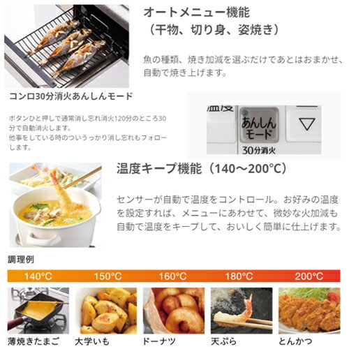 ※ラ・クックグラン(ブラック)が付属してます。 【規格・特徴】 ・外形寸法:幅593×奥行510×高さ50+220mm ・トッププレートタイプ:60cm ・本体質量:23.0kg ・電源:DC3.0V(乾電池単1×2) ・レンジフード連動機能 ・トッププレート素材:ハイパーガラスコートトップ ・トッププレートカラー:クリアパールダークグレー ・フェイスカラー:シャインシルバー 【機能】 「お手入れ」 ・すっきりフレームトップ ・ヒートカットトップ ・ツインシールド構造 ・グリル排気口周囲カバー(固定式+着脱式チリ受け左右2個) 「コンロ」 ・自動調理ガイド機能(アプリ) ・(あぶり)高温炒め機能(左右コンロ) ・コンロ調理タイマー(1〜99分、3口同時使用可能) ・温度キープ機能(140〜200℃(7段階)、左右コンロ) ・炊込み/炊飯/おかゆ(後コンロ) ・湯沸し機能(左右コンロ) ・煮込み機能(左右コンロ) 「グリル」 ・グリルタイプ:水なし両面焼 ・ラクック、ラクックグラン/ラクックグランポット対応 ・ラクックグランオートメニュー機能(魚、あたため、トースト) ・オートメニュー機能(姿焼、切身、干物) ・遠赤外線グリル ・グリル調理タイマー(1〜15分) 「安心・安全」 ・調理油過熱防止装置 ・立消え安全装置 ・焦げつき消火機能 ・コンロ、グリル消し忘れ消火機能(コンロ120分/グリル15分) ・フレームトラップ、グリル過熱防止機能 ・点火確認(コンロ/グリル):LED ・ロック ・カスタマイズ機能 ・レンジフード連動機能 ・低荷重温度センサー 【付属品】 ・ラクックグラン(ブラック) ・取り出しフォーク ・排気口チリ受け 【商品説明】 「キッチンの華になるきらめき大人コンロ」がテーマのBRilliO(ブリリオ)シリーズ。 使いやすく、ちょっと便利なちょうどいいスタイリッシュコンロです。 【大型商品の配送について】 ■基本ドライバー1人で訪問の為、荷下ろしの際にお手伝いできる方が必要となります。 ■時間指定が出来かねます。 詳細の配送状況につきましては、直接運送会社へご確認お願い申し上げます。 不在時は、不在票が投函されますので、お客様にて再配達のお手続きをお願い申し上げます。 2024年7月パロマブリリオ Paloma ビルトインコンロ レンジフード連動 3口パロマPD-743WS-60CD
