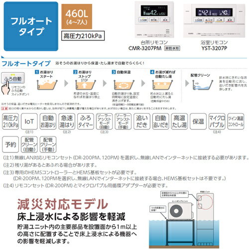 基本工事費(設置接続+処分費)とセットになりました!! お客様の設置状況等により必要部材など発生する場合があります。 まずは、簡単登録の無料お見積もりフォームよりご依頼ください。 また、ご不明な点などご相談承ります。お気軽にお問合わせ下さい。 尚、こちらのセット内容に脚部カバーを含んでおります。 脚部カバーがご不要の場合はお見積り時にお伝えください。 またこちらのメーカーは、大阪府、京都府、兵庫県、滋賀県、奈良県、和歌山県の2府4県 近畿エリア限定となります 【セット内容】 (1)EHP-4605BX-H ・ヒートポンプユニット(EHPE-6060) ・貯湯タンクユニット(ET-4605BX-H) (2)VE-TB-AB ・上部振れ止め金具 ※貯湯タンクの転倒防止の為、基本セットに上部固定金具も含みます。 (3)K-KHZ1010G ・ヒートポンプ用高置台 ※貯湯ユニットの設置面から1m以上の高さに設置する必要がある為、高置台も含みます。 (4)DR-121PM ・無線LAN対応インターホンリモコンセット(台所・浴室リモコン) ※マイクロバブルには対応していません。 (5)VE-KC-46B1H ・脚部カバー ※メーカー保証はタンク5年間、冷媒回路3年間です。 【規格・特徴】 ・460L(4〜7人用) ・フルオート ・角型 ・高圧力210kPa ・減災対応モデル ・床上浸水被害対応(※1m未満) ・一般地 【サイズ】 ヒートポンプユニット ・高さ675×幅825(+74)×奥行き300mm ・質量53kg 貯湯タンクユニット ・高さ2137×幅630×奥行き730mm ・質量(品質量/満水時質量) 75kg/535kg 【配送エリア】 ※北海道・沖縄・一部離島は配送が出来かねます。ご了承ください。 【別売り部材】 ・無線LAN対応タッチパネルリモコン DR-200PM ・増設リモコン CMR-3311SV ・台所・増設リモコンコード(5m/2心) RK-3P-5 ・台所・増設リモコンコード(8m/2心) RK-3P-8 ・台所・増設リモコンコード(15m/2心) RK-3P-15 ・台所・増設リモコンコード(20m/2心) RK-3P-20 ・浴室リモコンコード(5m/2心) KFR-3P-5 ・浴室リモコンコード(8m/2心) KFR-3P-8 ・浴室リモコンコード(15m/2心) KFR-3P-15 ・浴室リモコンコード(20m/2心) KFR-3P-20 ・一口循環口ペアチューブ用(ストレート) YJ-96 ・一口循環口ペアチューブ用(L字) YJ-96L ・マイクロバブル用循環アダプターペアチューブ用(ストレート) MB2-1-SF ・マイクロバブル用循環アダプターペアチューブ用(90度曲がり) MB2-1-FL ・アルミ三層管配管セット(ツイン)(一般地用)(3m) VE-ASH-3-10A 【機能】 ・高圧力210kPa ・IoT※1 ・自動お湯はり ・急速湯はり ・ふろタイマー ・ソーラーアシストモード(自動)※1 ・ソーラーアシストモード(手動) ・追いだき ・自動追いだき ・高温たし湯 ・保温 ・マイクロバブル※2 ・ツイン湯温コントロール ・予約 ・配管クリーン(自動) ・配管クリーン(手動) ※1無線LANでインターネットに接続する必要があります。 ※2無線LAN対応タッチパネルリモコンセット(DR-200PM)とマイクロバブル用循環アダプター(別売)が必要です。 【商品説明】 浴そうのお湯はりから保温、たし湯まで自動的に行います。 減災対応モデルは、昨今の水害対策として被害を最小化するための取り組みです。 貯湯ユニット内の主要部品を接地面から1m以上の高さに配置することで、床上浸水による機器への影響を軽減します。 長府 長府エコキュート 減災 洪水 210kPa 補助金対象機種 2025年省エネ事業補助金機種 助成金機種CHOFUEHP-4605BX-H-kst