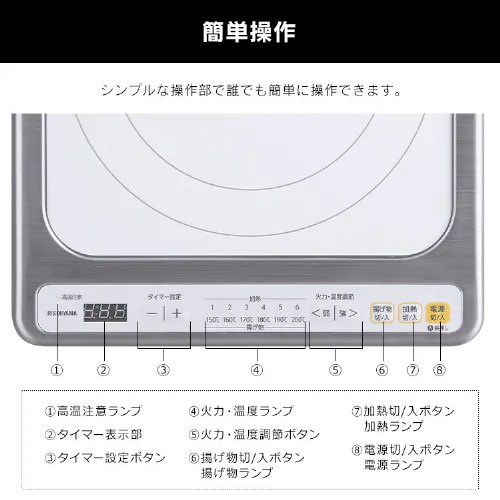 【規格・特徴】 ・電源:単相100V(50/60Hz共用) ・定格消費電力:1400W ・製品寸法(本体)(mm):幅310×奥行361×高さ76 ・製品重量:2.9kg ・電源コード:長さ70cm、2芯ゴム平行ケーブル ・電源プラグ:2極 125V 15A ・ホワイト 【火力調節】 ・加熱料理:6段階(火力) 80W相当〜1400W相当 ・揚げ物調理:6段階(油温) 約150度〜200度 【タイマー】 ・1分〜9時間50分 【安全機能】 ・なべ検知 ・なべなし検知 ・小物検知 ・切り忘れ防止 ・トッププレート加熱防止 【商品説明】 気コンロからの置き換えに最適な1口ビルトインIHクッキングヒーターです。 ミニキッチンでも簡単に取替えが可能な100Vタイプです。 加熱調理から揚げ物まで多用途に使え、煮込み料理に便利なタイマー機能付きです。 火を使わないのでキッチンの温度が上がりにくく快適にお料理することが出来ます。 【メーカー直送便の注意事項】 下記の条件がございますので、商品によってはご準備くださいますようお願い致します。 ※別途金額が発生する場合がありますので必ずご一読ください。 ■商品お渡しについて 基本ドライバー1人で訪問の為、荷下ろしの際にお手伝いできる方が必要となります。 集合住宅の場合は1階及びエントランス、戸建住宅の場合は玄関先でのお引き渡しとなります。 ■配送車について 一般的な宅配業者でございません。メーカー指定の大型トラック(4t車)にての配送となります。 道幅6m(一般的な軽自動車がすれ違える道幅)以下の場合、配達ができません。 別途追加料金が発生いたしますが、2tトラックでの手配が可能です。 階段、狭所など困難な場合はご相談ください。 ■商品お届け日について メーカーに在庫があり、日にち指定がない場合は、翌日、または翌々日のお届けとなります。ご希望日がありましたらご注文フォームの「お届け日時」にご記入ください。(平日のみ) 納期要確認の記載のある商品や受注生産商品の場合、納期にお時間が掛かります。詳細な納期については商品により異なりますので、改めて当店よりご連絡させて頂きます。 ■お届け時間について 時間指定が出来かねます。必ず連絡が取れる電話番号と荷受人のお名前を記載ください。 当日の配送時間(目安)については、配送前にドライバーよりご連絡させて頂きます。 (配送前連絡はサービスとなりますので確約するものではございません) ■不在時の再配達について 不在の場合は運送会社が持ち帰り、当日の再配達が出来かねます。 また保管料・再配達の手数料が発生する場合(お客様負担)がございますのでお届け日には必ずご在宅いただけますようお願い致します。 ■配送エリアについて 沖縄・離島地域の場合、別途費用がかかる場合がございます。 ■お支払い方法について 「後払い」「クレジットカード」「銀行振込」「郵便振替」のみとなります(代金引換は不可)。 ご入金確認後にメーカーへ発注させていただきます。 【大型商品の配送について】 ■基本ドライバー1人で訪問の為、荷下ろしの際にお手伝いできる方が必要となります。 ■大型トラック(4t車)にて配送となります。 道幅6m(一般的な軽自動車がすれ違える道幅)以下の場合、配達ができません。 ※別途追加料金が発生いたしますが、2tトラックでの手配が可能です。 階段、狭所など困難な場合はご相談ください。 ■時間指定が出来かねます。 その為、必ず連絡が取れる電話番号と荷受人の名前を記載ください。 当日の配送時間(目安)については、配送前にドライバーよりご連絡させて頂きます。 アイリスオーヤマ 1口コンロ キッチン 賃貸 一人暮らし オーナーアイリスオーヤマIHC-B113-W