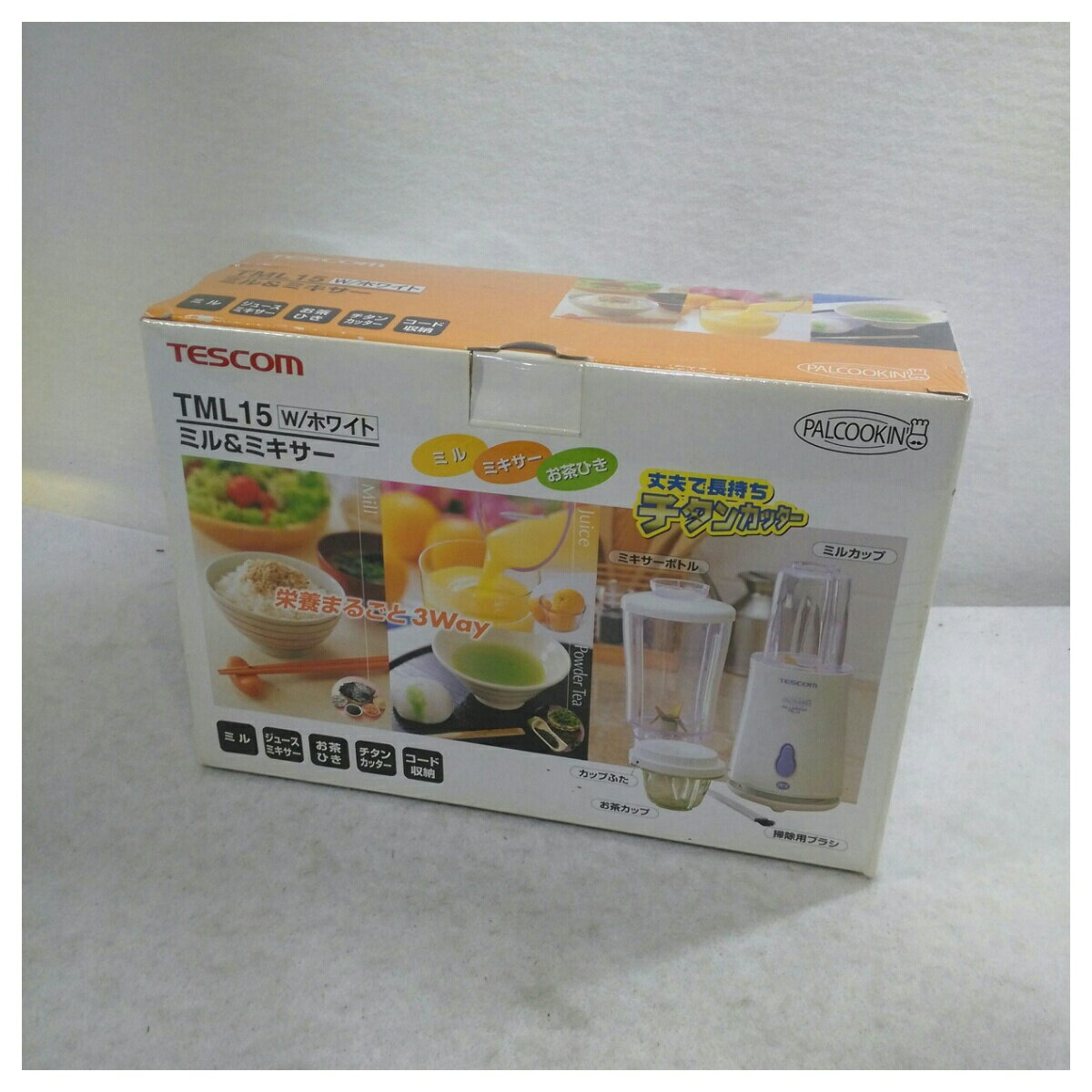 家電 置き古し テスコム TESCOM ミルandミキサー TML15W ホワイト系 型番 TML15W 色 ホワイト系 素材 仕様 チタンカッター、1台3役 サイズ(cm) 箱サイズ約W28.0×H20.3×D10.5 参考定価 0 重さ(kg) 0.820 付属品 取説 置き古し、古い物ですが未使用品です。 梱包して宅急便でお送りします。弊社の商品は1点物が多く在庫限りの出品です。この機会を逃さずお急ぎ、お求めくださいませ。 C O N D I T I O N 参考ランクは、 商品状態 新品 ※補足事項 ・ ■乾物はもちろん、ウェット対応で離乳食※2やドレッシングも作れます。フタ付きなのでそのまま保存ができます。 ※1:炒っていない豆類の粉砕、油分の多いナッツ類などをペーストにすることはできません。 ※2:粘り気の強いもの(茹でたかぼちゃ・いも類)のペーストはできません。茹でたにんじん等のペーストはできます。 ■茶葉専用の容器でお茶を粉末に。 カテキンを効率良く摂取出来ます。 ■1〜2人分にちょうどいい分量のボトルで、飲みきりサイズの新鮮スムージーが作れます。 ※ ミキサーボトルはスムージー作り専用です。 ■切削性能をアップした波刃を使用。 滑らかなジュースや氷入りのドリンクが作れます。 耐久性抜群のチタンコーティングされたカッター刃で、鋭い切れ味が長持ちします。 ・ 弊社はリサイクルショップですのでほとんどの商品は一般顧客様より店頭にて買取させていただいた商品です。したがってユーズド品であることをご理解いただき、神経質な方や、綺麗な状態にこだわる方はご購入をお避け頂き、直営店・量販店にて新品のご購入をお勧めいたします。出品ランクはあくまで参考でございます。ランクを理由としたご返品はお受けいたしかねます。ご了承くださいませ。 ■お取引について 発送方法・送料 ◎購入商品は「宅急便」にて発送させていただきます。 【送料】 ヤマト運輸様(北海道・東北・沖縄は日本郵便様)にて発送させていただきます。 60サイズ 北海道1500円 東北750円 関東・信越600円 北陸東海550円 関西・中四国550円 九州550円 沖縄1350円 【配送日指定】 配達日指定は、購入のあった日から1週間後までとさせていただきます。 ※一週間以上先のご指定はお受けできません。ご了承ください。 【配達時間帯希望サービス】 指定なし 9:00~12:00 14:00~16:00 16:00~18:00 18:00~20:00 19:00~21:00 【同包】 複数購入された場合の送料は同梱可能ですが大きさによっては別途お見積もりになります。 【発送】 商品の発送は当日正午までに決済確認ができましたら当日発送し指定の地域には翌日のお届けをさせていただきます。 消費税について 購入金額には、消費税10%が含まれています。 お支払いについて 【決済方法】 ●代金引換:手数料(商品代金) 330円(1万円未満)440円(~3万円)660円(~10万円)1100円(~30万円) ●銀行振込(振込先は、楽天銀行とゆうちょ銀行です) ※お振込みの手数料はお客者様のご負担とさせていただきます。 ●クレジット決済 注意事項 ■下記内容に同意の上、ご入札下さいますようお願い申し上げます ネット販売の性質上、パソコン環境・モニターなどの設定・仕様等で イメージ写真と実際の商品との色合いが若干異なる場合がございます。 ○ご購入後のキャンセルは等は、一切しておりません。 ○程度に敏感な方、神経質な方は必ず詳しい程度をお問い合わせください。 ○ご注文後、こちらからの連絡に48時間以上お返事が無い場合「お客様都合によるキャンセル」とさせて頂きます。 ○ご購入後、翌日から5営業日以内にお振込みの出来る方のみご注文下さい。 □気になる事がありましたら遠慮なくご質問下さい。 □掲載写真以外の画像もE-mailにてお送りする事が可能です。 □ご質問の返信は、取扱店舗の営業時間内に限ります。 【返品の特約】 ◇商品に欠陥がある場合を除き、返品や交換には応じておりません。 ◇商品に欠陥がある場合には送料当方負担にて、弊社が責任を持って対応させて頂きます。 ◇ご購入時についている付属品が欠品(紛失等)された場合、返品・交換はお受けできません。 ◇尚、商品の性質上、次の場合の返品・交換はお断りさせていただきます。 ・お客様の都合 ・一度ご使用になられた場合 ・イメージ違い(形状違い、大きさなど) ・連絡が無く、3日以上過ぎた場合 ◇お届けした商品がご注文の商品と異なっていた場合や事故等による損傷(不良品)が見られた場合、商品到着後48時間以内に「お電話かE-mail」にて、ご連絡をお願い致します。 【返金について】 ◇返品特約にあるお客様の都合以外の理由で返品となった場合、返金時の振込手数料は弊社にて負担いたします。 ◇銀行振込・代金引換などで、お客様が商品代金をお支払い後に「キャンセル(取消し)」をされた 場合、商品代金の返金はトラブル防止の為「ご購入者様名義への銀行振込」とさせていただきます。 ◇お振込みの際にかかる「手数料(振込手数料等)」は、お客様のご負担とさせていただきます。 ◇返金金額は、手数料を差し引いた商品代金(消費