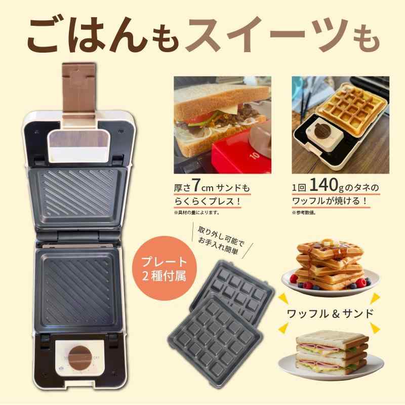 ホットサンドメーカー ワッフル【 耳まで焼ける 厚焼き 】 電気 洗える 着脱式 お手入れ簡単 音の出るタイマー機能 最大10分 焼き型2種 コンパクト収納 レトロ 一枚 焼き 一人暮らし ilosta (