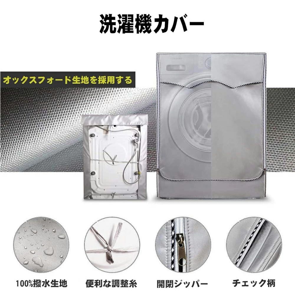 ●商品情報●素材/材質:オックスフォードの生地(撥水加工)●サイズ/寸法:●ドラム式:S:45x60x85cm(5.0-6.0kg)/M:50x60x85cm(6.0-7.0kg)/L:55x60x85cm(7.5-9.0kg)/XL:65x60x85cm(10.0-12.0kg)●縦型:S:52x53x85cm(5.0-6.0kg)/M:53x54x88cm(6.5-7.5kg)/L:56x58x92cm(8.0-9.5kg)/XL:60x60x98cm(10.0-12.0kg)【屋外保護・日焼け止め】屋外に置いた洗濯機は日に焼けしたり、雨に濡れたり、洗濯機本体は劣化易くなって、使用寿命は短くなります。本製品を使って、屋外の不利点を止めて、防水、防湿、日焼け止め、紫外線遮断で、愛用されている洗濯機を保護します。【簡単装着・SMLXLサイズ選択可】立体構造の本製品を展開して、一人でも簡単に洗濯機に装着できます。給水ホースと蓋の開閉も考慮して、スペース構えて、とても使いやすいです。サイズは洗濯機の大きさに合わせて、S、M、L、XLの4種類が用意されて、実際の大きさに基づいて本製品のサイズをご選択ください。【耐用5年以上・過熱保護3面包み】銀コーティングのポリエステル生地を使用して、頑丈の同時に日焼けとも効果と防水防湿効果が優れていて、5年以上も引き続き耐用できます。作業中の洗濯機を過熱保護するため、本製品は3面包んでいて、後ろは3本の紐で結びつけられて、製品全体を固定しています。【効果抜群・使用期限延長】暑い日と寒い日でも、洗濯機を保護しています。 日焼け止め、防湿、防塵、防水などの機能をもって、ちゃんと洗濯機の色さめ、サビ出る、ほこりなどの問題を解決できます。 ●ご注意:カバーは雨を遮断し、洗濯機を直接に濡らすことが防げますが、雨量が大きい場合、多少カバーを浸透する可能性があります。ほかの保護方法を追加する必要がありますので、予めご了承ください。