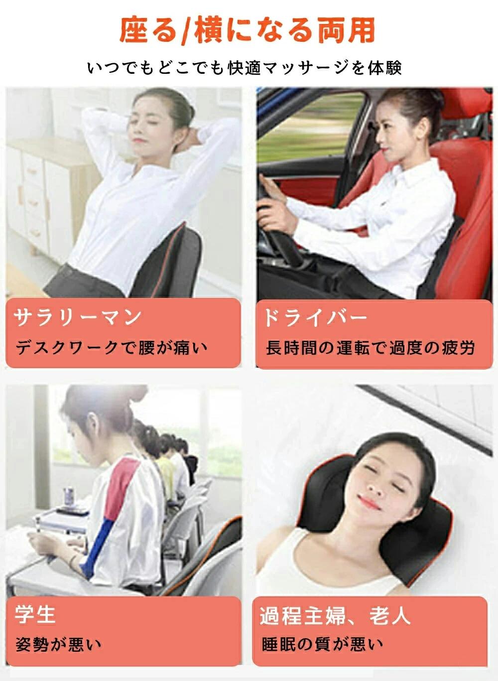 寝ながら マッサージ器 マッサージ枕 頚椎マッサージピロー 頚椎 牽引 電動マッサージ枕 マッサージピローマッサージ枕 電動 首マッサージャーマッサージピロー 電熱 マッサージクッション マッサージ 整体枕 背もたれ 肩マッサージ マッサージ器