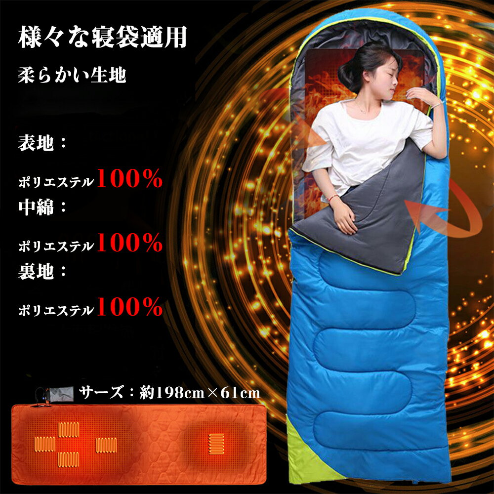 マット ホットマット ヒーターマット 寝袋用電熱マット シュラフ・寝袋用 発熱パッド 寒さ対策 3段温度調整 5つヒーター 均一加熱 保温防寒 抗菌防臭 アウトドア キャンプ 登山 車中泊 防災 自宅 丸洗い可能 電気マット 秋冬使用 収納袋付き コンパクト 日本語取扱書