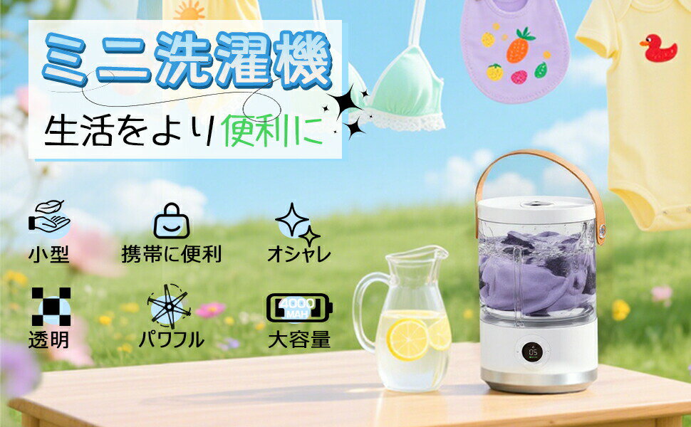 ★2025進級版\あなたの“私物”専用ウォッシャー/クーポンで4990円入手!ミニ洗濯機 コンパクト Mini洗濯機 小型 一人暮らし洗濯機 ポータブル おしゃれ 節水 深層洗浄 家庭用 USB充電式 4000mAh 1人用 ミニランドリー 別洗い 靴下 下着 出張 旅行 持ち運び 携帯便利
