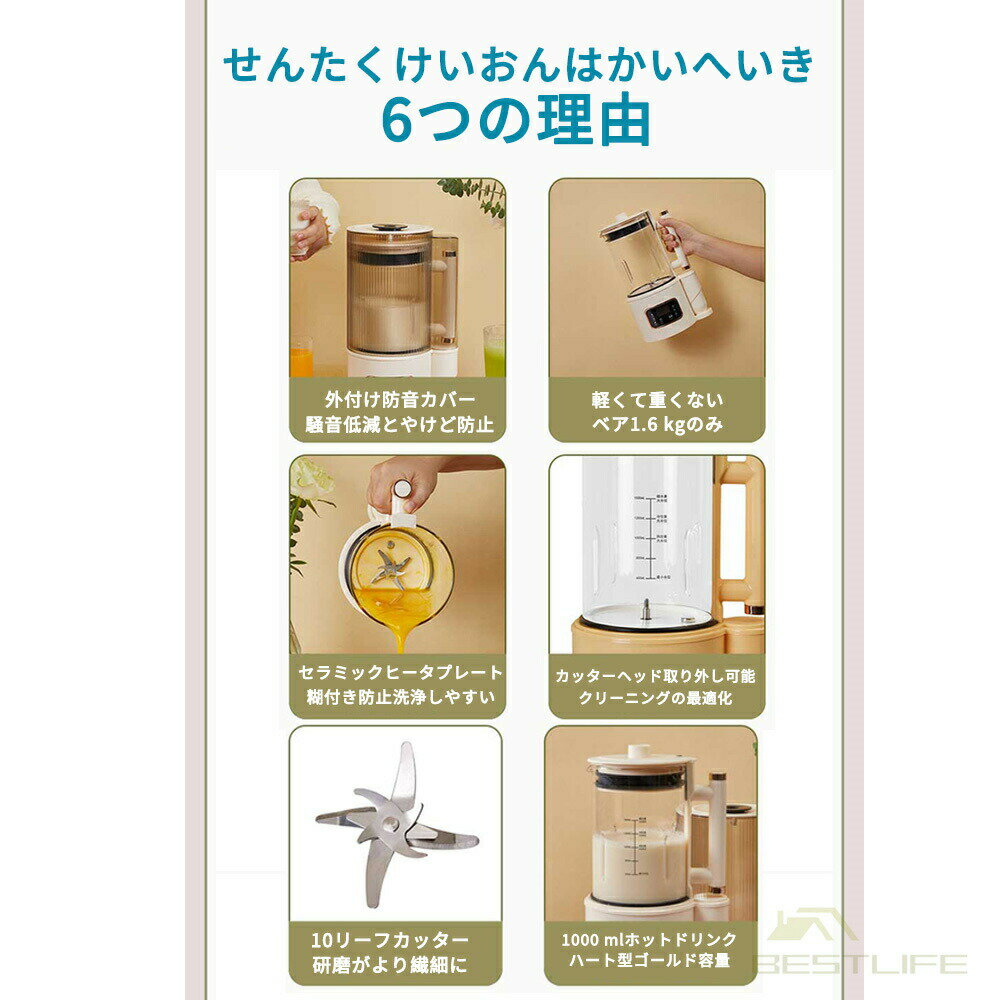【1年保証】豆乳 メーカー 乾燥大豆 スープメーカー 全自動 ミキサー ブレンダー スムージー 自動調理 加熱 スープ 豆乳 12H予約 10枚刃 1500ml 6人分 多機能 時短調理 ペースト食 調理 軽量 静音 洗浄モード 冷熱対応