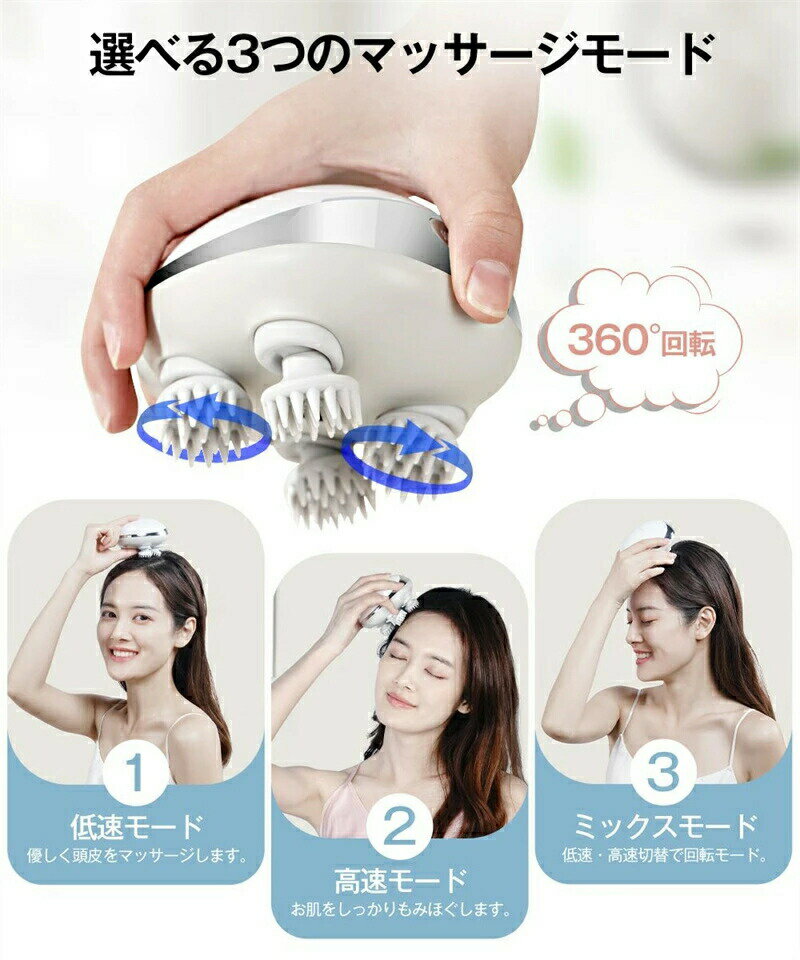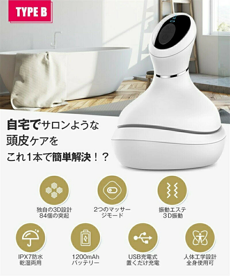ヘッドマッサージ器カラー ホワイト商品内容 ★化粧箱×1★ヘッドスパ本体×1★専用充電台×1★充電用ケーブル×1★日本語取扱説明書×1★シリコンブラシ×4スペック ■【独自の3D設計・88個の突起】プロの手の動きを再現!■【3つのマッサージモード】6種類のハンドテクニックを実現!■【赤光エステ】髪の根元に強くする。■【振動エステ】頭皮を清潔で柔軟に整える。■【IPX7防水・乾湿両用】お風呂にも使える。■【1200mAhバッテリー】2時間充電で2週間使用可能。■【USB充電式・置くだけ充電】磁気吸着式、充電便利。■【人体工学設計・全身使用可】手軽なリラックスできるヘッドスパ。オススメシーン 自宅 自用 元日 成人の日 春分の日 卒園 卒業 退職 卒業式 入学式 みどりの日 家族 母 父母親 父親 両親 奥さん 奥様 旦那様 妻 旦那さん 娘 息子 結婚式 Xmas 誕生日 還暦祝い お祝い 合格 クリスマスイブ クリスマス 御中元 お中元 カップル 恋愛対象 恋人 キッズ 子供 情人 友人 友達 プレゼント ギフト 誕生日 記念日 プレゼント 健康 メンズ レディース 女 女性 男 男性 男女 肩 首 母の日 母の日ギフト 母の日プレゼント 花以外 父の日 敬老の日 敬老の日 プレゼント 敬老の日 ギフト バレンタイン ホワイトデー プレゼントチョコ以外 クリスマス グッズ 贈り物 ギフト 人気 リラックス リラクゼーション 癒し バレンタインデー チョコ以外 ホワイトデー お返し 母の日 父の日 花以外 実用的 送料無料 おすすめヘッドスパ ヘッドマッサージ機こんな方にオススメ! ★頭皮が固い、またはベタつく★頭皮(髪)を洗うのが雑になりがち★抜け毛が増えてきている★髪に元気がなくなってきた★顔全体が下がり気味★常にココロとカラダがお疲れモードTypeA&TypeB同じところ ★独自の3D設計★■3Dマッサージサロン:自宅でサロン級スパで頭皮を優しく揉み解す。■ローラーの傾斜を15°にすることで、立体的な3Dの動きを実現。■奥まで入り込める形状なので、毛量が多くても肌まで届く。★選べる3つのマッサージモード★■低速モード:優しく頭皮をマッサージします。■高速モード:お肌をしっかりもみほぐします。■モックスモード:低速・高速切替で回転モード。★6種類のハンドテクニックを実現★■開く、閉める、押す、ひっばる、揉む、つまむ■指でのケアと違い、突起が頭皮をしっかりキャッチするので「頭皮を動かしす」簡単かつ短時間で 行うことができます。★赤光エステ★■エステサロンや美顔器でもよく使われる赤光エステは髪の根元に強くする。★IPX7防水・乾湿両用★■乾用 リラックスと頭皮ケア■湿用 頭皮の汚れを掃き出す■持ちやすいフィットの設計、お風呂にも使え、髪にハリ・コシを与えられることも期待できる。★人間工学に基づいて★■2時間フル充電、20回使用できる(1回10分)。■内蔵1200mAh大容量バッテリー、長時間使用でき、外出、旅行などに便利。■コンパクトサイズ、持ち運びやすい、出張や旅行の時一日中の疲労を回復!■柔らかいシリコンブラシ、肌にやさしくて、長時間使用しても傷つけない。■10分タイマー設定、適度使用するために、自動的にオフする。■お手入れ簡単、ブラシ部分を取り外して洗えるのでカビる心配なし!TypeA&TypeB違うところ ★独自の突起★■TypeA:88個の突起■TypeB:84個の突起★振動エステ★■TypeAだけついております。■頭皮動き量は1.5倍アップ!程よい振動が、頭皮のツボを優しく刺激。1年保証 保証期間:お買い上げ日から360日初期不良、自然故障等、通常使用における不具合には保証対応させていただきます。関連キーワード ヘッドマッサージ スパ ヘッドスパ へっどすぱ ヘアブラシ マッサージ機 ブラシ 頭皮エステ ヘッドマッサージャー 白髪 育毛 薄毛 乾いた髪 効果 全身 ボディケア 首 小顔 肩こり むくみ トリートメント シャンプー お風呂 以外 抜け毛 抜け毛予防 痩身 ダイエット 睡眠 眠り 眠る 寝ながら 寝る前 自律神経 エステ 毛穴洗浄 頭皮洗浄 ひきしめ リフトケア 頭皮ケア 家電 ツボ 気持ちいい 人気 自宅 家 グッズ 電動 お手入れ 防水 雑貨 自分で 自分 男性 メンズ レディース 女性 女の子 男の子 子供 母の日 父の日 母 父 プレゼント ギフト 美顔器 美容家電 ポップ 音波頭皮ブラシ 在宅勤務 在宅ワーク 在宅応援 母の日 プレゼント 母の日ギフト 恋人 友達 キッズ 子供 父 母 プレゼント ギフト 敬老の日 セール 家庭用 ホワイトデー 公式 実用的 成人の日 成人式 バレンタイン バレンタインデー ホワイトデー 卒業式 入学式 母の日 父の日 敬老の日 クリスマス Xmas 誕生日 還暦祝い お祝い 合格 ギフト プレゼント 母の日ギフト 父の日ギフト 父の日 御中元 お中元 送料無料 あす楽ヘッドマッサージ器カラー ホワイト商品内容 ★化粧箱×1★ヘッドスパ本体×1★専用充電台×1★充電用ケーブル×1★日本語取扱説明書×1★シリコンブラシ×4スペック ■【独自の3D設計・88個の突起】プロの手の動きを再現!■【3つのマッサージモード】6種類のハンドテクニックを