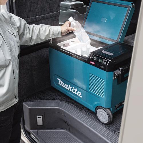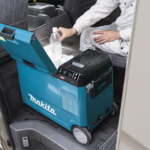 マキタ CW004GZ充電式保冷温庫 ミドルサイズ29L仕様ドアを両側から開閉可能−18°C保冷 ~ 60°C保温 40Vmax/18Vバッテリ別売充電器別売AC100V使用可能シガーソケット使用可能(DC12-24V) カラー:青 ※実際の色は表示の色とは多少異なります 説明画像は別カラーのモデルも使用しております 両側から開閉、取り外し可能な利便性の高いドア 車内からの出し入れも 車外からの出し入れも ドアの取り外し可能 内容物の出し入れやドア、庫内の掃除が楽に。 マキタバッテリで−18°C保冷 〜 60°C保温 40Vmaxと18Vに対応。炎天下でいつでも手軽にキンキンに冷えた水分補給ができます。寒い時期には温かい飲み物で身体を素早く温めます。現場から趣味のアウトドアまで幅広いシーンで活躍。 2部屋モード切替機能付 仕切り板をセットすることで、2部屋モードに自動切替。左右で異なる温度を用途に応じて設定可能。※部屋の温度差は最大30°Cです。 使いやすさがさらにアップした「29Lサイズ」 ペットボトルの収納本数 500mLペットボトルは約30本、2Lペットボトルは6本まで収納可能。※ペットボトルのサイズにより収納本数は異なります。 2Lペットボトルがたて置き可能 収納に便利な各種付属品 インナートレイ 小さい食品等の整理収納に便利。350ml缶3本収納可能。※缶のサイズにより収納本数は異なります。 庫内カゴ 内容物をまとめて取り出し可能。2Lペットボトル4本収納可能。※ペットボトルのサイズにより収納本数は異なります。 AC100V、シガーソケットでも使用可能 ACアダプタ、シガーソケット用コードが標準付属なので、バッテリが無くても使用できます。 どこでも長時間保冷・保温 保冷剤や飲料の冷凍・保冷に。コーキング剤の保温等にも使用可能。※新品未開封、且つコーキング剤メーカーの推奨保管温度内に限る。開封済みのコーキング剤は揮発性ガスが発生しますので食品と一緒に入れないで下さい。 17段階温度設定 -18°C〜60°Cの間で細かな温度設定が可能。保冷保温中は、温度表示画面の左上にあるランプが点灯。視覚的に識別。 その他の特長 ■ドレンコック付:庫内掃除後の水抜きに便利。 ■ごみ袋用フック付:持ち手部分にごみ袋を引っ掛け可能。 ■キャリーハンドル付:運搬しやすい角度で固定可能。 ■防水保護等級IPX4(バッテリ使用時) ※IP表示をしている製品は粉じんや水による影響を受けにくいように設計されていますが、故障しないことを保証するものではありません。■瓶飲料の栓抜き付■USB機器充電可能 【主要機能】 モデルNoCW004G内容積(L)29能力-18°C〜60°Cに設定可能冷却方式コンプレッサ・冷媒ガス(R-134a 33g)圧縮方式温蔵方式ワイヤヒータ加熱方式感電保護クラスClass III断熱材(発砲ガス)ポリウレタンフォーム(シクロペンタン)USB出力端子数1出力電圧直流5.0V出力電流直流2.4A形状USB A型電源(V)直流36(40Vmax)直流18AC100自動車シガーライターソケット DC12-24V※電源の補足 40Vmaxは満充電時のバッテリ電圧を表しています。ライトバッテリ除く。1充電使用時間[作業量](目安)40Vmax5.0Ah×2本−18°C:約12時間30分2部屋モード時:約11時間(※外気温30°C)60°C:約11時間50分(※外気温0°C)18V6.0Ah×2本−18°C:約7時間2部屋モード時:約8時間(※外気温30°C)60°C:約6時間(※外気温0°C)※1充電使用時間[作業量](目安)の補足 庫内が設定温度に達してからの測定時間。数値は参考値です。バッテリの充電状態や作業条件によって異なります。2部屋モードは -18°C設定(左)5°C設定(右)時。本機寸法(mm)長さ676幅345高さ471庫内寸法(mm)長さ343幅240高さ338質量(kg)20※質量の補足 BL4080F×2本装着時。標準付属品ショルダーベルトACアダプタシガーソケット用コードインナートレイ庫内カゴ機能防じん・防水IPX4USB機器充電○推奨バッテリBL4025◎BL4040◎BL4050F◎BL4080F◎※推奨バッテリの補足 ◎:推奨/〇:使用可