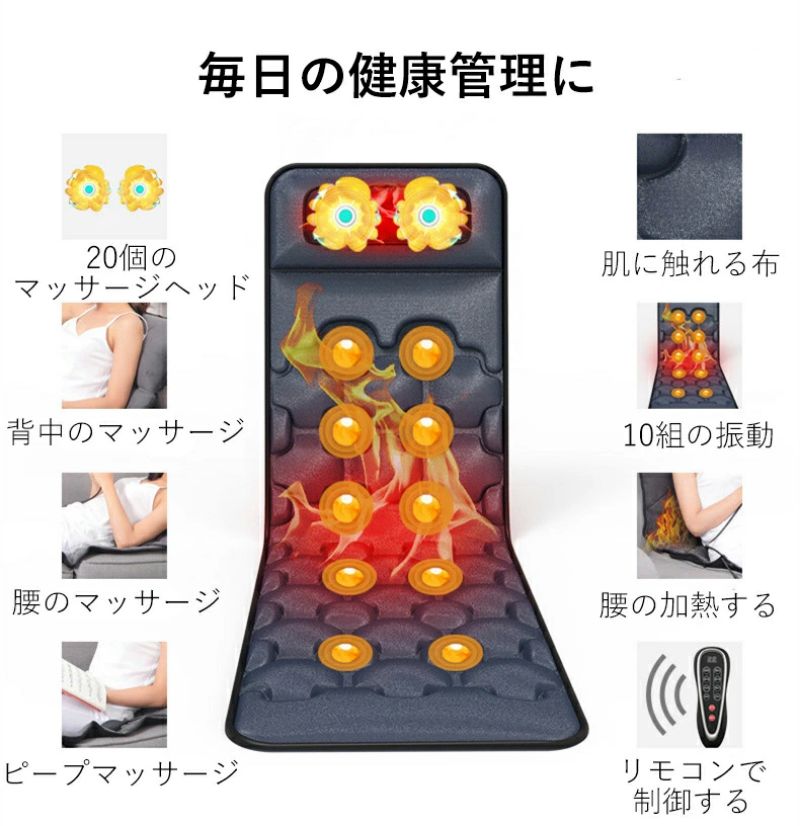 マッサージマットレス 健康管理 30頭 全身マッサージパッド インテリジェント加熱 温感マッサージ 電気マッサージ器 多機能 温感熱罨法 9種類のモード 折り畳 加熱 揉み 振動 定時 リモコン付き マッサージクッション 敬老の日 プレゼント お両親 誕生日 新生活