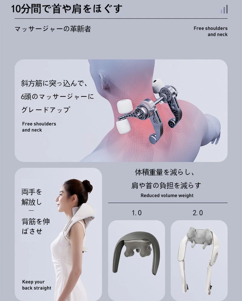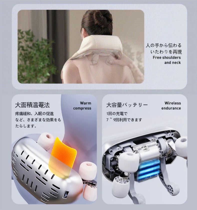 最新マッサージ器 小型 全身 肩こり 腰 足 女性 軽量 3Dネックマッサージ 首マッサージ機 コードレス 温熱 強弱 調節 血行促進 神経痛 筋肉痛 敬老の日