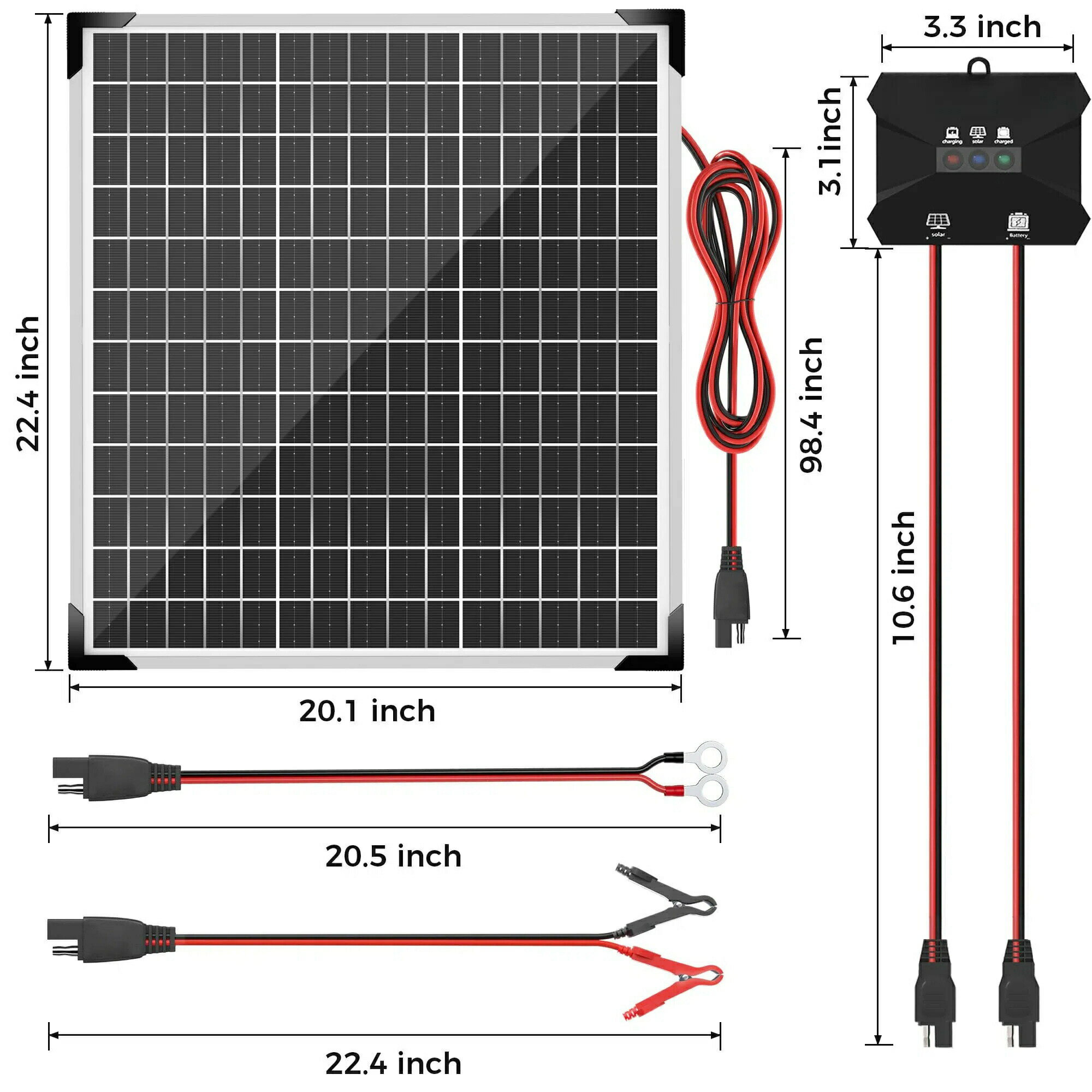 ? アップグレードされたコントローラー:メンテナンス付きのインテリジェント充電コントローラーは、他のソーラー充電コントローラーよりも20%~30%以上多くの電力を生成します。 10A 充電コントローラー 100% 防水、完全に水に浸すことができます。 バッテリーを完全に保護し、過充電、過放電、過電圧、過電流、過負荷、短絡、逆極性、過熱を防ぎます。10Aコントローラーはソーラーパネルの最大電力に適しています。 130Wを超えないでください? 優れた単結晶シリコン:30ワットソーラーパネルは最大30%の有効変換率を備えたA+単結晶シリコンを採用しています。 十分な太陽光があれば、高効率、高変換率が達成でき、他のアモルファス材料よりも充電効率と充電速度が大幅に向上します。また、寿命は最大25年です? LEDインジケーター監視:3つの明確なLEDインジケーターにより、動作状態とバッテリーの状態を常によく視覚化できます。 赤色光と青色光(充電中) - 青色光(太陽光下) - 緑色光(フル充電) - 光なし(短絡)。 太陽光発電が故障した場合でも、時間内に接続を確認できます。 ソーラーチャージメンテナーはソーラーパネルのみから電力を供給され、バッテリー電力を消費しません? 防水性:ソーラーバッテリー充電器は強化ソーラーガラスでできており、耐腐食性アルミニウム合金の取り付けフレームが付いています。 強化ガラスは高強度で耐衝撃性があり、しっかりとした作りで長年にわたって機能します。 IP65防水防錆太陽電池充電器は、強風、雷雨、吹雪、雹などのあらゆる厳しい気象条件に耐えることができ、最大2400Paの風圧と最大5400Paの積雪荷重に耐えることができます? 幅広い用途:ソーラーバッテリー充電器は、車、ボート、トラック、船舶、オートバイ、トラクター、ATV、ダンプトレーラー、芝刈り機、スノーモービル、RV、キャンピングカー、ドアオープナー、ポンプ、防犯カメラ、電気柵などに便利です。 ?、リチウムイオン、? アップグレードされたコントローラー:メンテナンス付きのインテリジェント充電コントローラーは、他のソーラー充電コントローラーよりも20%~30%以上多くの電力を生成します。 10A 充電コントローラー 100% 防水、完全に水に浸すことができます。 バッテリーを完全に保護し、過充電、過放電、過電圧、過電流、過負荷、短絡、逆極性、過熱を防ぎます。10Aコントローラーはソーラーパネルの最大電力に適しています。 130Wを超えないでください? 優れた単結晶シリコン:30ワットソーラーパネルは最大30%の有効変換率を備えたA+単結晶シリコンを採用しています。 十分な太陽光があれば、高効率、高変換率が達成でき、他のアモルファス材料よりも充電効率と充電速度が大幅に向上します。また、寿命は最大25年です? LEDインジケーター監視:3つの明確なLEDインジケーターにより、動作状態とバッテリーの状態を常によく視覚化できます。 赤色光と青色光(充電中) - 青色光(太陽光下) - 緑色光(フル充電) - 光なし(短絡)。 太陽光発電が故障した場合でも、時間内に接続を確認できます。 ソーラーチャージメンテナーはソーラーパネルのみから電力を供給され、バッテリー電力を消費しません? 防水性:ソーラーバッテリー充電器は強化ソーラーガラスでできており、耐腐食性アルミニウム合金の取り付けフレームが付いています。 強化ガラスは高強度で耐衝撃性があり、しっかりとした作りで長年にわたって機能します。 IP65防水防錆太陽電池充電器は、強風、雷雨、吹雪、雹などのあらゆる厳しい気象条件に耐えることができ、最大2400Paの風圧と最大5400Paの積雪荷重に耐えることができます? 幅広い用途:ソーラーバッテリー充電器は、車、ボート、トラック、船舶、オートバイ、トラクター、ATV、ダンプトレーラー、芝刈り機、スノーモービル、RV、キャンピングカー、ドアオープナー、ポンプ、防犯カメラ、電気柵などに便利です。 ?、リチウムイオン、