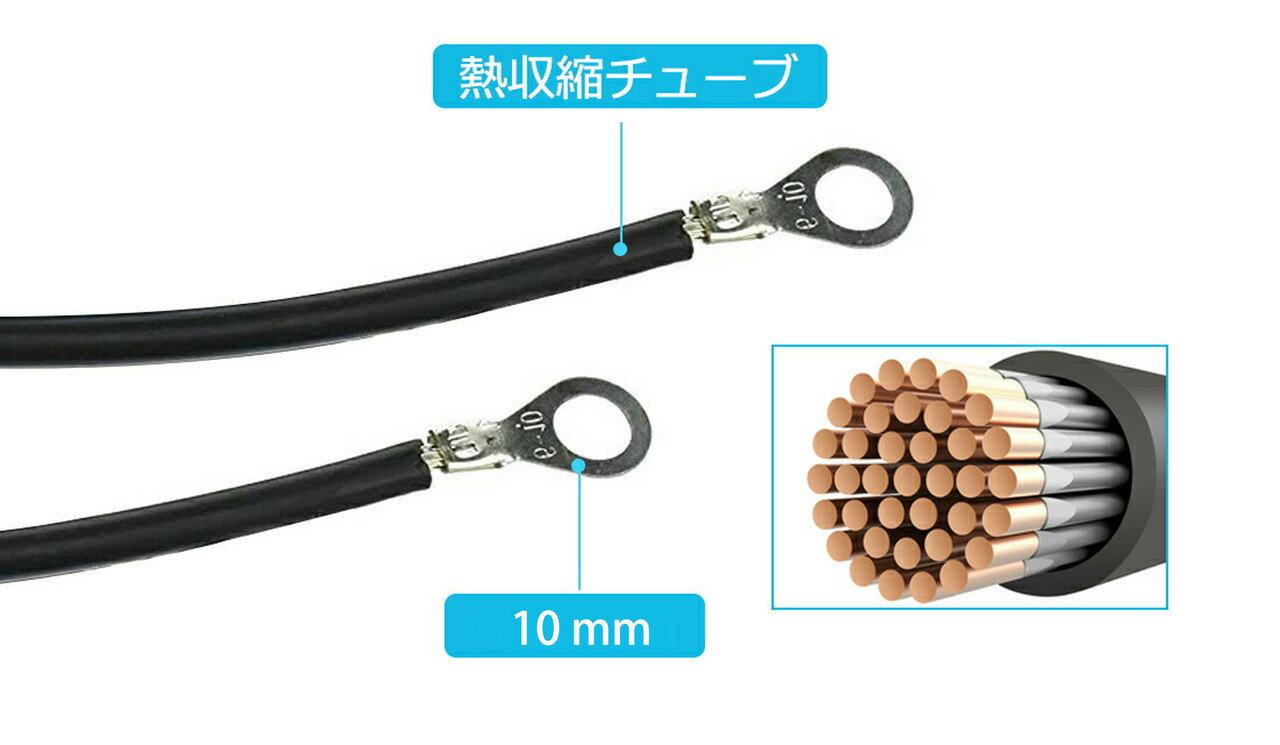 チャージコントローラー⇔バッテリー間 延長ケーブル 2.4m 3.5SQ/5.5SQ/8SQ/14SQ トレイケーブル ソーラー発電 接続用 サポート無料 SEKIYA