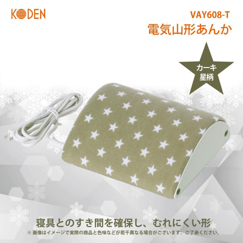 広電(KODEN) 電気あんか 山形 カーキ 星柄 快適保温 温度調節可 省エネ かわいい 22×24.5cm VAY608-T【安全性】この製品は「Sマーク」がついているので不安なくお使いできます。 Sマークは、電気用品安全法を補完し、電気製品の安全のための第三者認証制度です。 Sマーク付電気製品は、第三者認証機関によって製品試験及び工場の品質管理の調査が行われている証です。【デザイン】おしゃれでスタイリッシュな星柄のデザインはクリスマスのプレゼントにも適しています。【省エネ】おやすみ前の簡単快眠サポート 電気代もおトクです。【しっかりあたためる】小さいサイズなのにしっかりあたためます。寝具との隙間を確保して、むれにくいカタチです。【簡単・便利なパーソナル暖房機器】湯たんぽよりも簡単・便利面倒なお湯の入替なしで、ひと晩中温度キープで安全です。