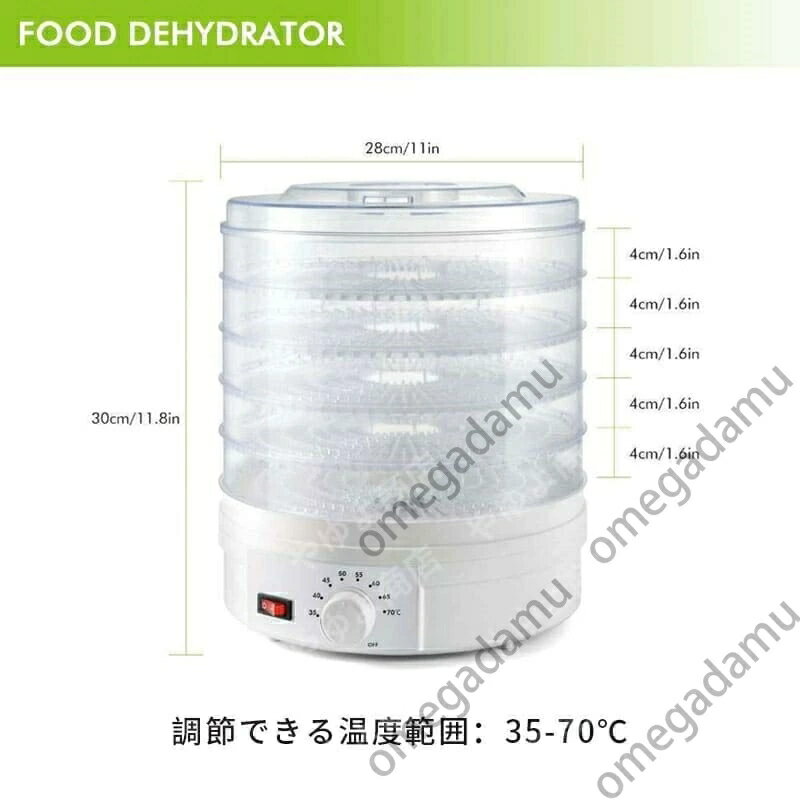 〔お勧めポイント〕 ■フード、野菜、フルーツドライヤー ■調節できる温度範囲:35-70℃ ■温度が自由に調節できる ■蓋とトレイは全部水洗いでも構わない ■いろんななフードに対応できるので、ドライフードの魅力を満喫 〔商品仕様〕 ■商品名:食品乾燥機 ■材質:ABS ■格定電圧:110V ■格定周波数:50Hz ■消費電力:350W ■サイズ:280*280*320mm ■温度調節範囲:35-70℃ 色差、誤差について ※商品画像については、モニターによって色味が若干異なります事ご了承ください。 ※すべて平置きサイズです。(採寸方法によって誤差が生じる場合がございますので、予めご了承ください。) 〔商品特徴〕 ■正確にコントロール ■AS材料 ■様々な食材に対応できる ■コンパクトで軽量 ■5段トレイ ■調節温度範囲:35-75℃ ■350W消費電力で省エネ ■360°均一に乾燥できる