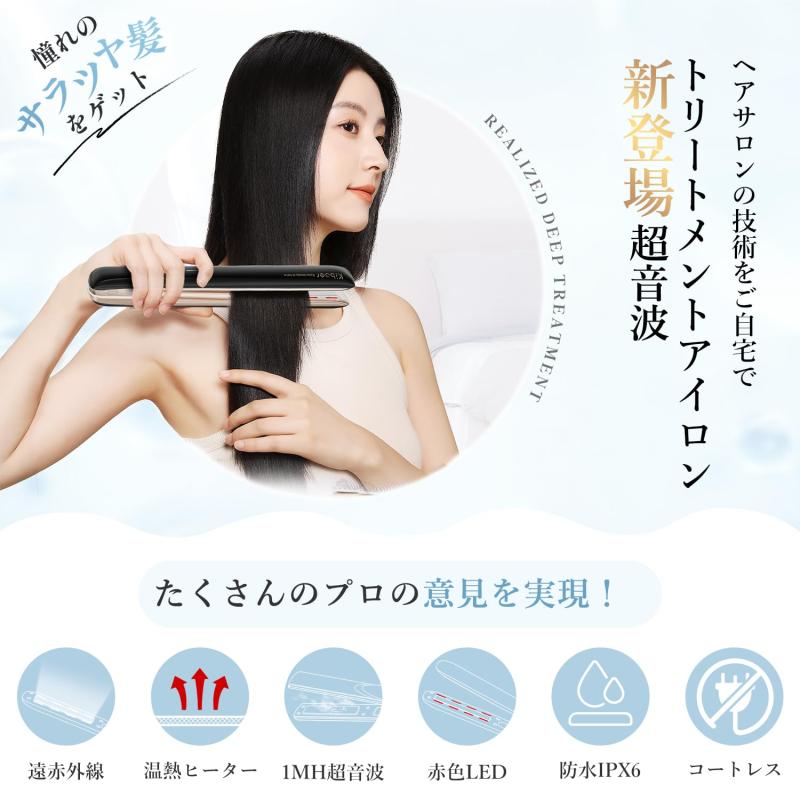 Kiboer 超音波トリートメント ヘアアイロン 美髪ケア 髪質改善 超音波アイロン ディープトリートメント トリートメント導入器 ツヤ髪 1MHz超音波 遠赤外線 赤色 温熱ヒーターLED ヘアケア ヘア