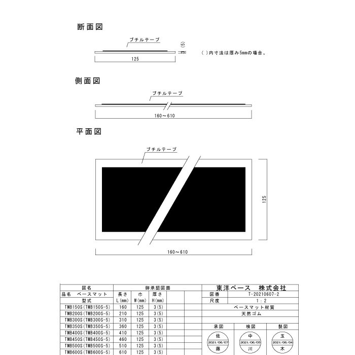 商品詳細製造東洋ベース品番TMB350S-5仕様説明・商品名:東洋ベース TMB350S-5 両面テープ付き/受注生産 ベースマット(天然ゴム) 長さ360mm 厚さ5mm【取寄商品】・品番:TMB350S-5・長さ:360mm・厚さ:5mm・上部幅,下部幅:125mm・重さ:0.21kg天然ゴムタイプがございます。屋上に塗膜防水処理が施され、ブロックを直接設置できない場合にご使用ください。両面テープ付きもご用意しております。任意のサイズ(1m×1m以内)の加工承ります。※2008年度自動販売機据付基準対応品です。・各メーカーの羽子板金具に取付可能!・長さ130高さ120のA130と長さ150高さ100のA150の2タイプをご用意。・各種配管架台の基礎や配管支持等多用途にお使いいただけます。・凍結防止剤入り(AE材)で寒冷地でも使用可能。備考※掲載画像と商品が異なる場合がございます。そういった場合はメーカー提供の代表画像として商品画像を掲載しております。恐れ入りますが商品名や仕様等をご確認頂き、お間違いのないようご注文下さいませ。