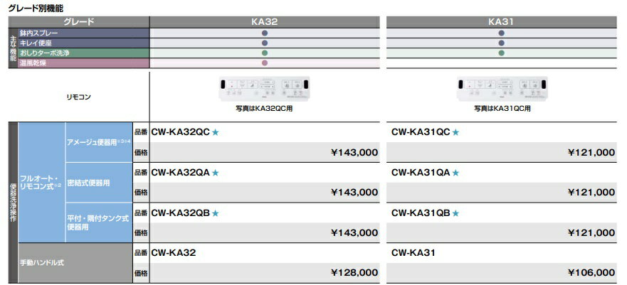 【CW-KA31QB】LIXIL リクシル シャワートイレ KA31グレード CW-KA31QB フルオート自動洗浄 平付 隅付タンク式便器用 メーカー直送便にてのお届け 北海道・沖縄及び離島は別途送料かかります