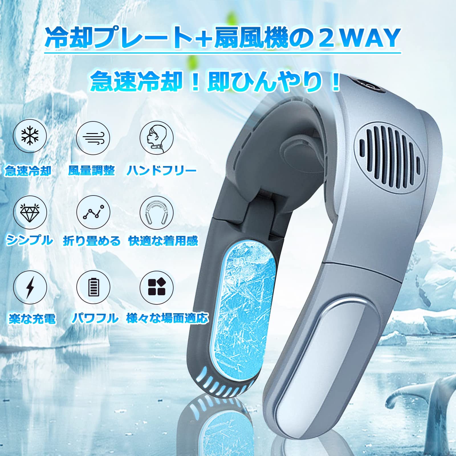 ご注意:モニターの発色具合により実際の商品とは色合いが異なる場合がございます。商品説明商品名ネッククーラー商品内容半導体冷凍技術:半導体冷却チップによって発生された電流によって生成されたアルミニウムは冷却され、皮膚を冷却しそして直ちに2秒間冷却する。大面積の冷蔵アルミニウムプレートが最適です。涼しい夏を楽しむために、二重冷却、物理的冷却、快適な空気、効率的な放熱を使用できます。 『長い稼働時間・5000mAh大容量バッテリー内蔵』ネック部分に大容量5000mAhのリチウムイオンバッテリーを内蔵しており、およそ3.5時間でフル充電可能となっております。最大10時間の長持ちバッテリーで、長時間の外出時や室外作業などで、電池切れの心配がほとんどなく、快適にお過ごしいただけます。(*使用のモードにより、時間が異なります。)また、電池残量が確認でき、事前に充電を忘れたときでも、USB充電仕樣で、パソコン、モバイルバッテリーなどから充電できます。※ご注意:入力:5V/2A 『【安心使用】』羽根なし首掛けモデルで、空気を取り込む吸気口は長い髪でも巻き込みにくいブレードレス設計になっているため、万が一髪の毛が近くにあっても吸い込まれにくく安心してお使いいただけます。(ご注意:髪を巻き込みにくい設計になっておりますが、安全のため髪の長い方は結んでご使用ください。) 『フィット感』首掛け部には柔軟性のあるシリコン素材を採用。お好みの角度に調整できます。首にかけるだけで、完全ハンズフリーを実現します。女性から男性まで、あらゆる体型の人の首に合わせたサイズの調整が可能です。 『ニーズに応じて自由に動作方式調整可能・うれしい折りたためる仕様』室内だけでなく、ネック部分を首周りに沿わせて固定するので安定感があり、ファンが近いので風も近く感じられ、夏場のキャンプや運動、散歩などの室外活動に持っていったら暑さ対策にも良いチョイス!収納も楽で、くるっと巻いてコンパクトに持ち運べます。需要に合わせて、ボタンで冷却プレートと扇風機はそれぞれ切り替えが可能!お好みやシチュエーションに合わせて自由に調整可能! あらゆる場面で活躍するアイテム!注意事項弊社が一部自動的な作業を行いますので、ご発送後の注文内容変更、配送先変更、キャンセル、住所記載ミスの再配送は受付できません。 注文の最後にくれぐれ下記の内容も一度確認をよろしくお願いします。 1.引っ越し前の住所のままに配送先になっているか? 2.アパート・マンションの部屋番号記入しているでしょうか? 3.番地記載しているでしょうか? 4.住所一部しか記入しているでしょうか? ただし、発送前に修正可能です。商品の配送について弊店は複数の通販サイトで出店しており、在庫を共用する場合がございます。楽天倉庫以外の外部倉庫から出荷する場合もございます。ご注意:モニターの発色具合により実際の商品とは色合いが異なる場合がございます。商品説明商品名ネッククーラー商品内容半導体冷凍技術:半導体冷却チップによって発生された電流によって生成されたアルミニウムは冷却され、皮膚を冷却しそして直ちに2秒間冷却する。大面積の冷蔵アルミニウムプレートが最適です。涼しい夏を楽しむために、二重冷却、物理的冷却、快適な空気、効率的な放熱を使用できます。 『長い稼働時間・5000mAh大容量バッテリー内蔵』ネック部分に大容量5000mAhのリチウムイオンバッテリーを内蔵しており、およそ3.5時間でフル充電可能となっております。最大10時間の長持ちバッテリーで、長時間の外出時や室外作業などで、電池切れの心配がほとんどなく、快適にお過ごしいただけます。(*使用のモードにより、時間が異なります。)また、電池残量が確認でき、事前に充電を忘れたときでも、USB充電仕樣で、パソコン、モバイルバッテリーなどから充電できます。※ご注意:入力:5V/2A 『【安心使用】』羽根なし首掛けモデルで、空気を取り込む吸気口は長い髪でも巻き込みにくいブレードレス設計になっているため、万が一髪の毛が近くにあっても吸い込まれにくく安心してお使いいただけます。(ご注意:髪を巻き込みにくい設計になっておりますが、安全のため髪の長い方は結んでご使用ください。) 『フィット感』首掛け部には柔軟性のあるシリコン素材を採用。お好みの角度に調整できます。首にかけるだけで、完全ハンズフリーを実現します。女性から男性まで、あらゆる体型の人の首に合わせたサイズの調整が可能です。 『ニーズに応じて自由に動作方式調整可能・うれしい折りたためる仕様』室内だけでなく、ネック部分を首周りに沿わせて固定するので安定感があり、ファンが近いので風も近く感じられ、夏場のキャンプや運動、散歩などの室外活動に持っていったら暑さ対策にも良いチョイス!収納も楽で、くるっと巻いてコンパクトに持ち運べます。需要に合わせて、ボタンで冷却プレートと扇風機はそれぞれ切り替えが可能!お好み