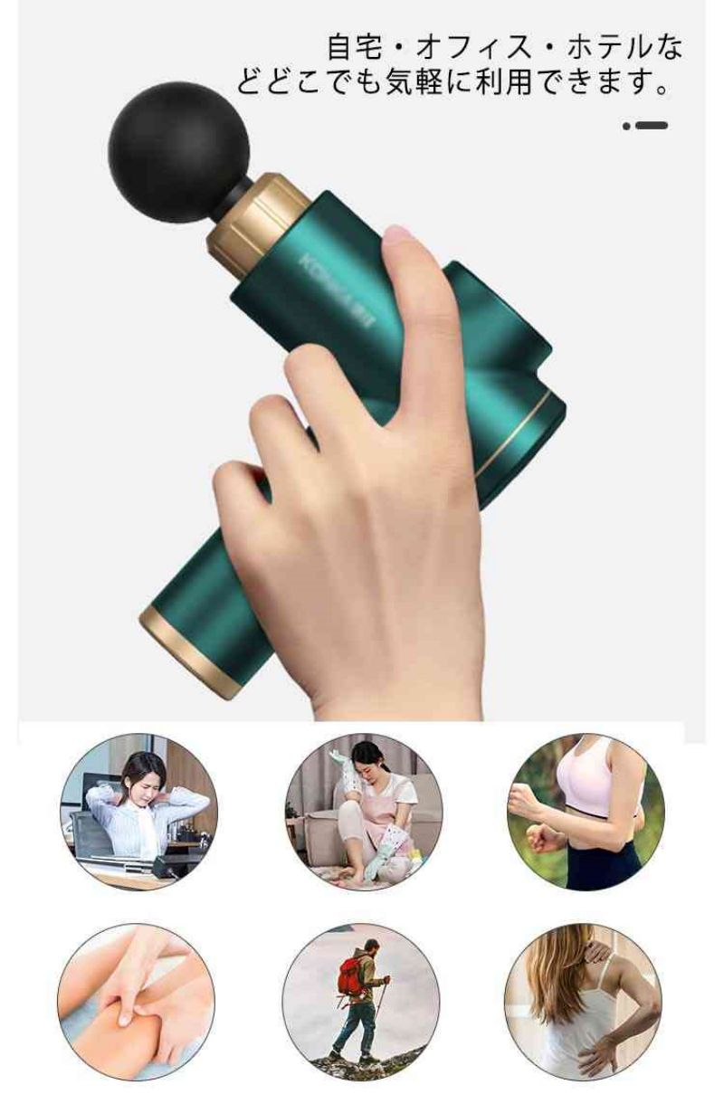 商品名】マッサージガン 【素材】ABS その他 【サイズ】サイズ表 【特徴】 マッサージヘッド:8個 振動調節:6段階 電池:リチウムバッテリー 連続利用可能時間:約8時間 振動数:9800回/分 セット内容:マッサージガン本体、ヘッド*8、充電ケーブル*1、取扱説明書*1 【注意事項】 ※本製品は、治療等を目的とした医療機器・治療器・マッサージ機・マッサージ器・マッサージャーではありません。一般家庭用の運動補助器(雑貨)です。また、マッサージ効果を保証するものではありません。 ※違和感を感じる場合は使用をおやめください。 ※特定部分に長くマッサージしないでください。危険な部位を避けてご使用ください。 ※幼児、未成年者、妊娠中の女性、ペースメーカー、骨折または金属製のものを体に使用しないでください。 ※本製品を分解や修理、改造をしないでください。 ※頭・首・心臓・性器・骨への使用を禁止します。 ※ 医師から、各種マッサージおよびマッサージャー・マッサージ機・マッサージ器・マッサージガン等の使用を禁じられている方は、絶対にご使用にならないでください。 ※他のマッサージ機器との併用はお避け下さい。 サイズ F8種類ヘッド サイズについての説明 【サイズ】サイズ表 素材 【素材】ABS その他 色 赤 灰 緑 備考 ●サイズ詳細等の測り方はスタッフ間で統一、徹底はしておりますが、実寸は商品によって若干の誤差(1cm〜3cm )がある場合がございますので、予めご了承ください。 ●製造ロットにより、細部形状の違いや、同色でも色味に多少の誤差が生じます。 ●パッケージは改良のため予告なく仕様を変更する場合があります。 ▼商品の色は、撮影時の光や、お客様のモニターの色具合などにより、実際の商品と異なる場合がございます。あらかじめ、ご了承ください。 ▼生地の特性上、やや匂いが強く感じられるものもございます。数日のご使用や陰干しなどで気になる匂いはほとんど感じられなくなります。 ▼同じ商品でも生産時期により形やサイズ、カラーに多少の誤差が生じる場合もございます。 ▼出荷前に全て検品を行っておりますが、万が一商品に不具合があった場合は、お問い合わせフォームまたはメールよりご連絡頂けます様お願い申し上げます。速やかに対応致しますのでご安心ください。