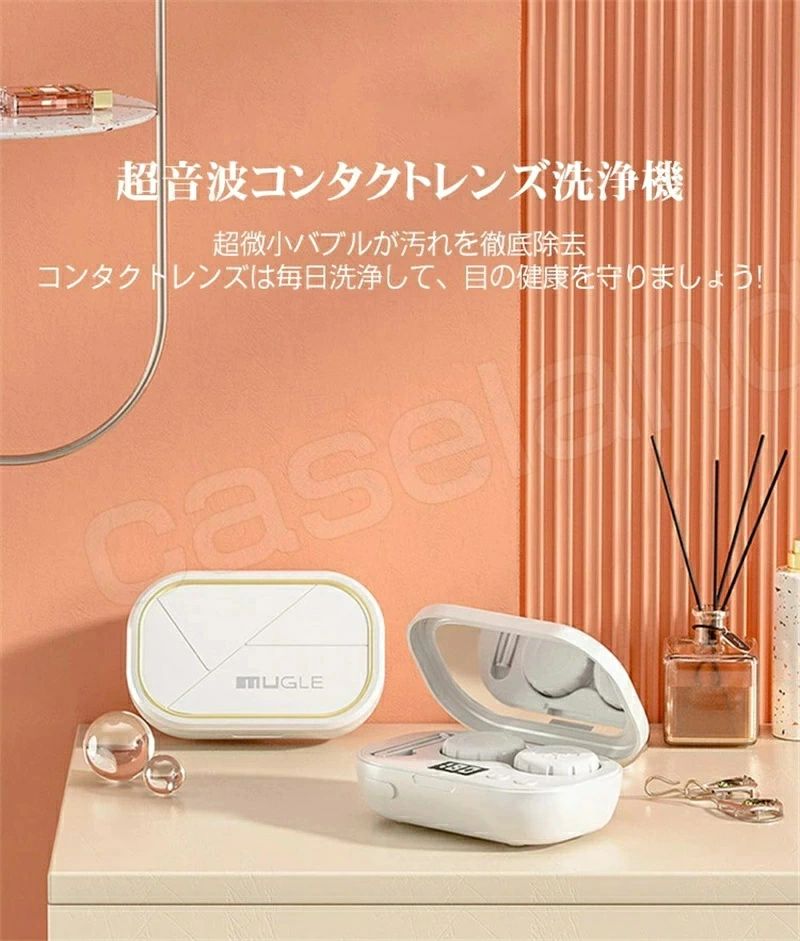 商品説明 替用ケース2個付き サイズ:約100*65*35mm 重量:98g 内蔵電源:リチウム電池 充電方法:USBケーブル 充電時間:約3-4時間 動作時間:2/3/4/5分コース (1回の充電で90日ほどの使用が可能となります) ※1日1回の洗浄と仮定した場合 動作原理:音波振動 使い方 STEP1: 洗浄ケースを本体から取り外します。 STEP2: 洗浄ケースのキャップを外して、コンタクト用の洗浄液や精製水を注ぎます。 7ml以上入れると、溢れて故障の原因になる場合がありますのでご注意ください。 STEP3: キャップを締めて洗浄ケースを本体に戻し、台座にしっかりと固定します。 STEP4: 洗浄開始ボタンを押して、自動停止するまで待ちます。 商品詳細 【ミニ超音波洗浄器】 超音波の原理を通じてレンズに付着するタンパク質の沈殿を急速に取り除き、長時間の浸漬も必要がない。 ミニ超音波洗浄器 OKレンズ、ハードレンズ、ソフトレンズ、カラコンなどに適しています。 【液晶画面】 残り時間を液晶画面で確認できます。 【コンタクトレンズをしっかり洗浄しないと…】 巨大乳頭結膜炎や角膜浸潤など、さまざまな目のトラブルを引き起こすこともあります。 また、涙腺たんぱく質は、レンズの表面などに長時間留まり、多数のバクテリアを繁殖させる原因にもなります。 コンタクトレンズは毎日洗浄して、目の健康を守りましょう! 【たった3分! こすり洗いはもう必要なし!】 ハード、ソフト、カラコン、全てのレンズタイプに対応した超音波洗浄機! コンタクトレンズは、眼に直接つけるものだから、いつもキレイにしておきたいものです。 超音波コンタクトレンズ洗浄機で、レンズのケア、お手軽に始めましょう!! 【操作簡単&持ち運びが便利】 特別なレンズケアソリューションを必要せず、手洗い不要。 小型且つ軽量でポケットに入れてどこに行っても、本製品はいつもお客様のそばにいます。 コンパクトで持ち運びやすいので、遠足、出張、キャンプ、野営などに最適です。 注意事項 ●製品は防水製ではないので、本体、ボタン、充電口などに水が付着しないようにしてください。 ●二つの清浄槽だけを洗浄し、ボタンと充電口を水に入れないでください。 ●製品を使用完了したらバイ菌などの再生を防ぐ為に必ずや清浄槽の清潔と乾燥を保ってください。 ●製品が壊れないよう、洗浄液を入れないまま製品を起動しないでください。 ●製品へのダメージやバイ菌が伝染しないよう、水道水を洗浄槽に入れて洗浄するのはおやめください。