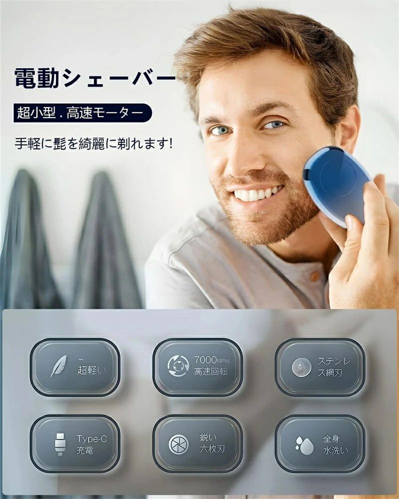 商品説明 【ハニカム構造の網刃】 360度密着システムで剃り残しゼロ、鋭い切れ味で深剃りしやすい。 【超軽量,便利】ミニカミソリはポケットサイズなので、持ち運びも便利です。 ミニカミソリを持ち歩けば、いつでも好きな時にヒゲを剃ったり、顔をきれいにすることができ、とても便利ですよ。ご自宅用はもちろん、旅行、出張や長時間の外出などにも大活躍し。人間工学に基づいたデザインで、握りやすく、手が疲れない 【自動研磨システム トリマー付き】 自動研磨システムを搭載しており、回転するたびに内刃が外刃で研磨され、常にシャープな切れ味。長持ちしやすく、耐久性が優れています。 【幅広い用途】シェービング、足の毛、脇の下の毛、胸毛、体毛などの除去が 1 台のマシンで実行できます。男性と女性の世話をするために自宅で必要なミニポータブル電気シェーバーは 1 つだけです。 【パッケージ内容?品質保証】シェーバー本体*1、USB充電ケーブル*1、清掃用ブラシ*1、マニュアル*1。